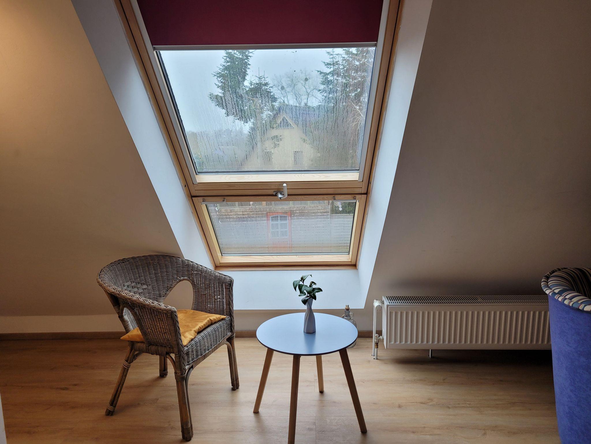 Das Ferienzimmer liegt in der oberen Etage und ist über eine Treppe zu erreichen. Es ist ein Nichtraucherzimmer, ausgestattet mit einem Fernseher und einem Doppelbett (1,80m breit). Das Bad hat eine Dusche. Der Fußbodenbelag ist hochwertiges PVC.