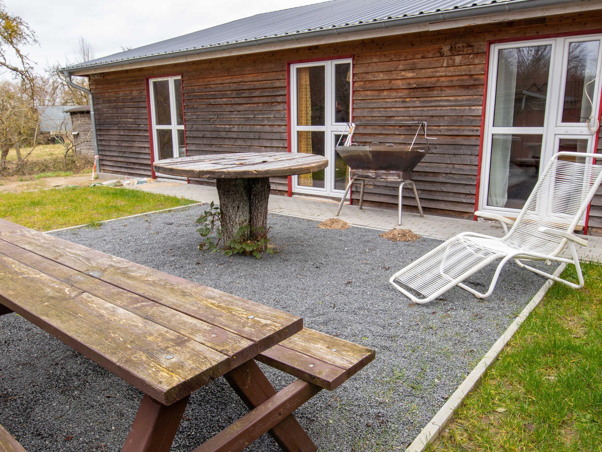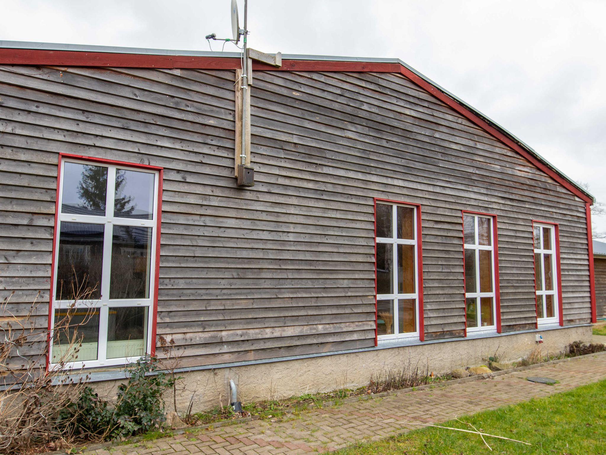 Das 170 m² große Ferienhaus bietet Platz für bis zu 20 Erwachsene und 10 Kinder. Im Haupthaus befindet sich ein 80 m² großer Gemeinschaftsraum, der mit einer offenen, großen Küche, einem Kaminofen und ausreichend Sitzmöglichkeiten inklusive Tischen eingerichtet ist. Die Küche ist mit Kühl-Gefriermöglichkeit, 4-Platten-Herd, Backofen und Geschirrspüler ausgestattet. Das Ferienhaus bietet sich perfekt für Klassenfahrten oder Schulausflüge an.