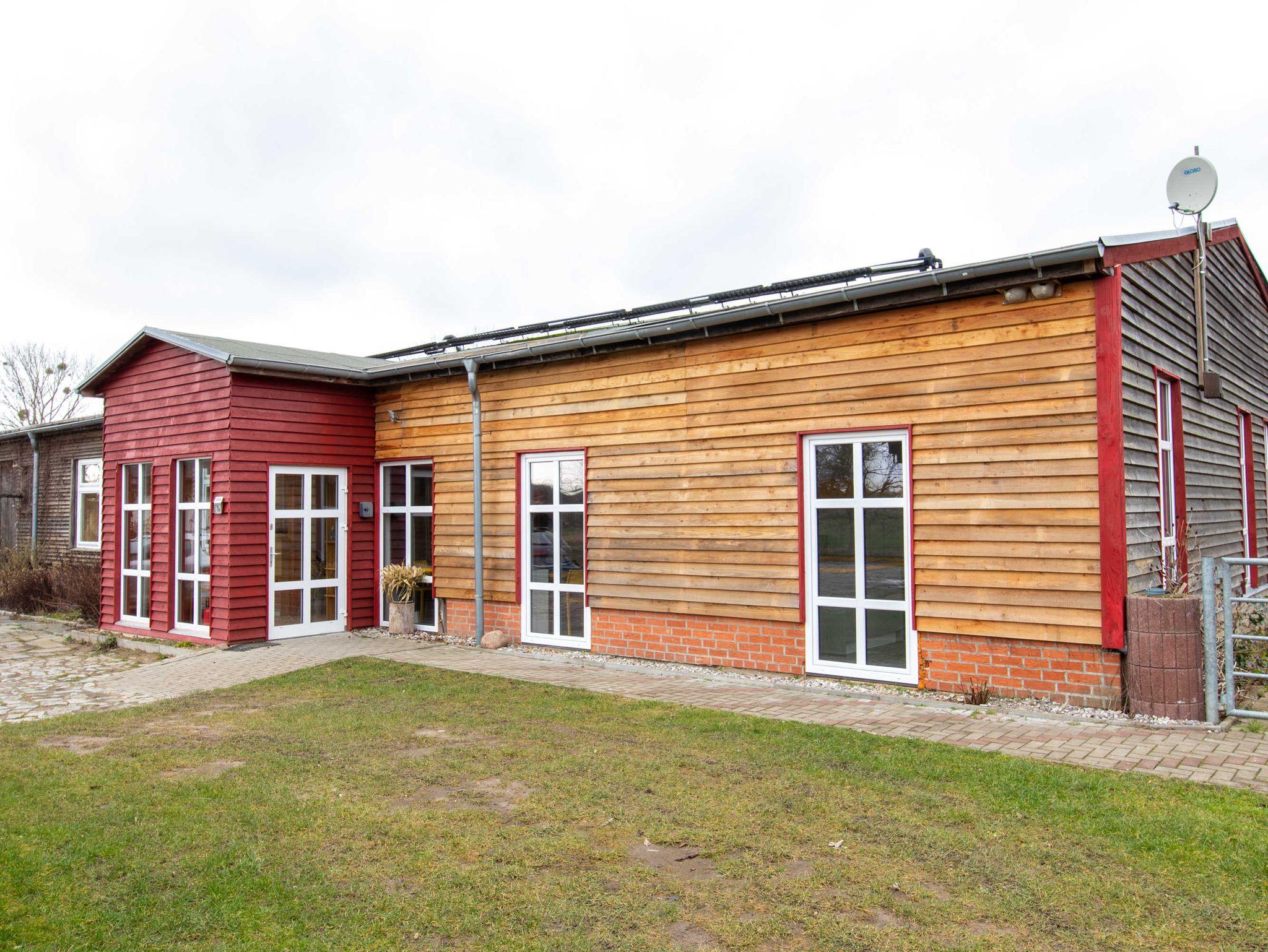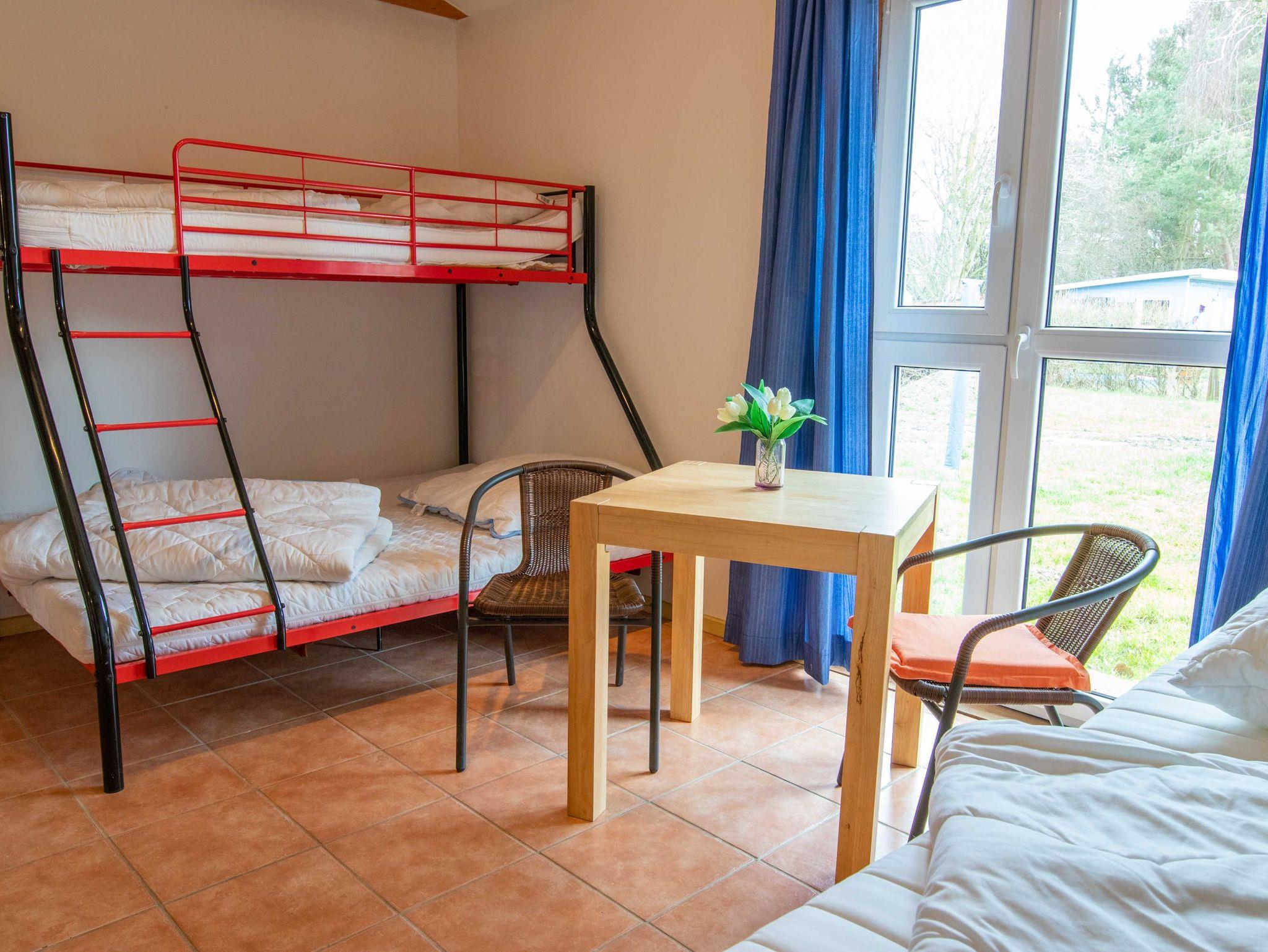 Das ebenerdige 170 m² große Ferienhaus besteht aus einem neu erbautem Gästehaus mit 6 hellen Mehrbettzimmern mit bis zu 7 Betten, jeweils mit eigenem Bad mit Dusche und WC, sowie einem 80m² großen Gruppenraum mit Platz für 30 Personen für Projektarbeiten und gemeinsames Essen im Haupthaus. Die Küche ist voll ausgestattet u.a. mit Kühl-Gefriermöglichkeit, 4-Platten-Herd, Backofen, Geschirrspüler, Besteck, Geschirr und Töpfe. Das Haupthaus und der Neubau sind miteinander verbunden.Das Ferienhaus bietet sich perfekt für Klassenfahrten oder Schulausflüge an.