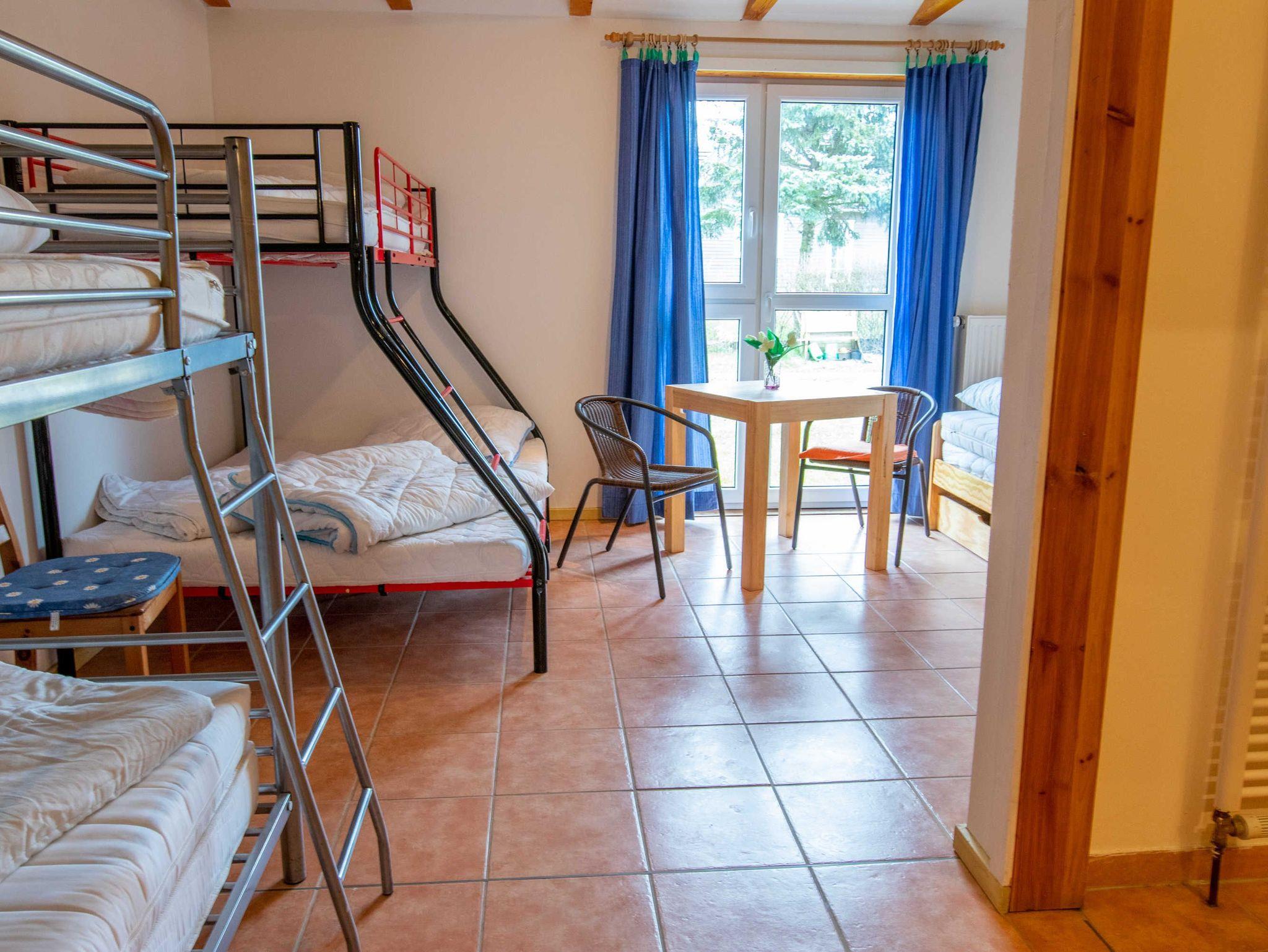 Gruppenstärkende Aktivitäten, wie zum Beispiel ein Kinder- und Jugendkochkurs in der modernen Lehrküche, die extra hierfür ausgestattet ist, können gebucht werden. Außerdem wird gemeinsames Pizza- oder Brot backen im Lehmofen, matschen mit Lehm oder Natur- und Umweltkunde direkt auf dem Gelände angeboten.Die Schlafzimmer befinden sich im neu erbauten zugehörigen Gästehaus. Die 6 hellen Mehrbettzimmer sind mit 4 bis 7 Betten und jeweils mit eigenem Bad mit Dusche und WC eingerichtet. Außerdem gibt es ein behindertengerechtes Zimmer (Zimmer 3) mit rollstuhlgerechtem Badezimmer, welches mit einer befahrbaren Dusche, Duschsitz, Waschbecken und WC eingerichtet ist. Die Heizung-Warmwasserversorung wird durch eine Solaranlage und ein Kamin unterstützt. Auf dem Grundstück stehen ausreichend Parkplätze zur Verfügung.