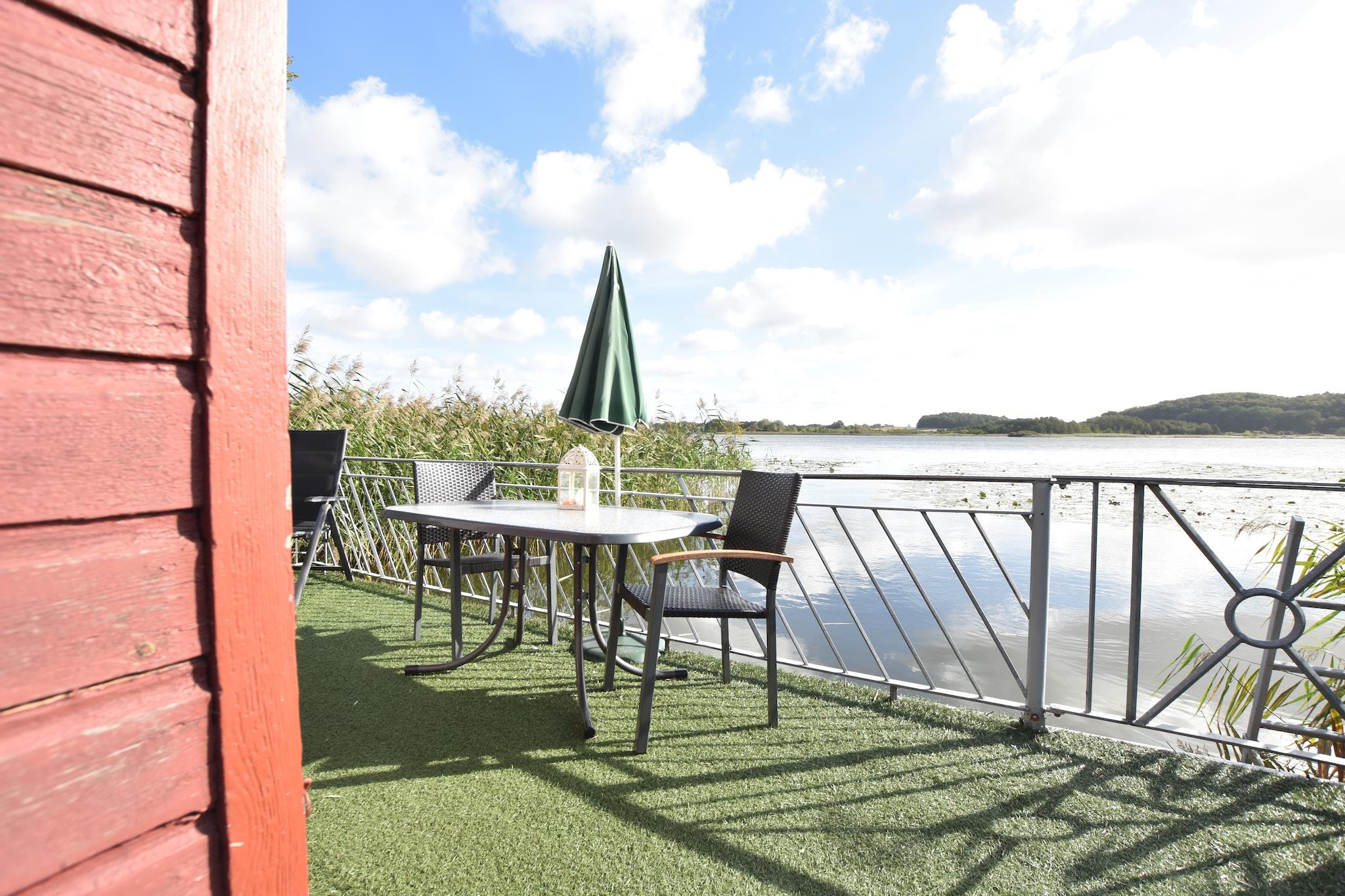 Stueetage: (åbent køkken(elkedel, brødrister, komfur(Komfur med to kogeplader), kaffemaskine, mikrobølgeovn, køleskab(+ fryser)), stue / spisestue(Fjernsyn(fladskærm), spisebord(4 personer), sofahjørne, radio), badeværelse(bruser, håndvask, toilet, føntørrer), varme) Loft: (soveværelse(2x enkeltseng, enkeltseng)) fortøjningsbro, terrasse, havemøbler, solstole, grill(på anmodning, elektrisk), cykler til rådighed(på anmodning)