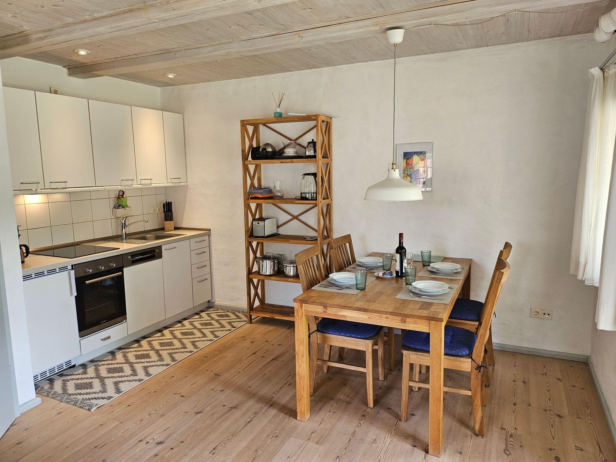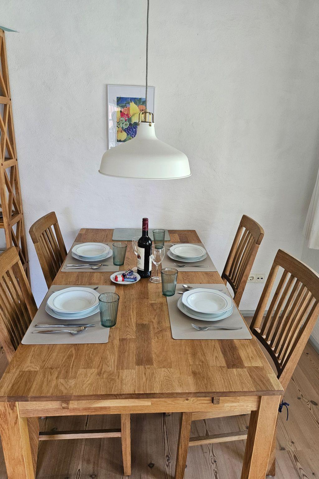 Inside, guests will find a lovingly furnished holiday flat that leaves nothing to be desired. Equipped with two cosy rooms, the flat includes a bedroom with a comfortable double bed and plenty of storage space, as well as a living/dining room with a system sofa, a dining table, four chairs and a fully equipped fitted kitchen. Amenities include a smart TV, a combined pad and brew coffee machine and an extensive selection of kitchen accessories. The bright bathroom with shower rounds off the space.