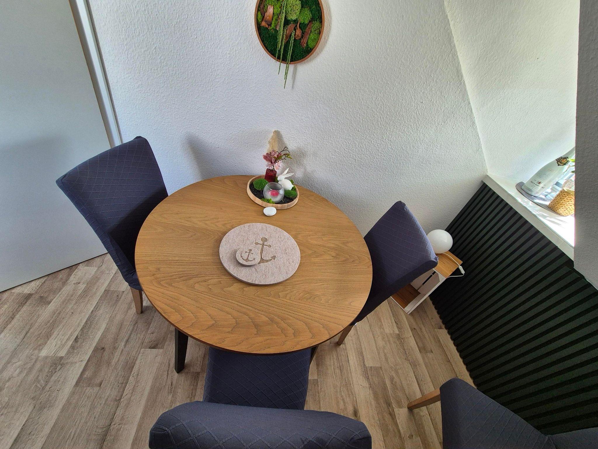 Der Wohn-/Essbereich bietet Euch bis zu 4 Essplätze und eine ausziehbare Couch, weswegen theoretisch dort durchaus ein Kind/Jugendlicher schlafen könnte. Der Fernseher hat Netflix und Amazon wie auch die öffentlich-rechtlichen Sender. Dafür nutzt einfach den jeweilig eingerichteten Gastzugang.