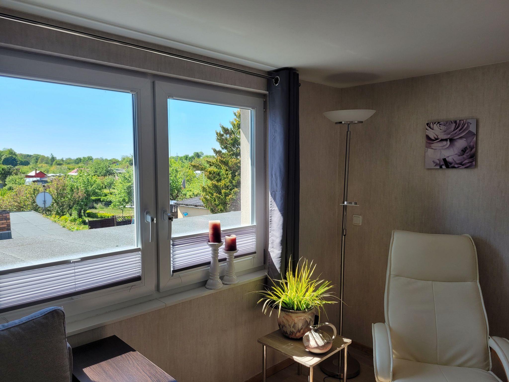 Die charmante und moderne Ferienwohnung liegt verkehrsgünstig im Ortsteil Andershof, am Rande einer Kleingartensparte und ist über einen separaten Eingang im 1.OG über eine recht steile Treppe (siehe Foto) zu erreichen.