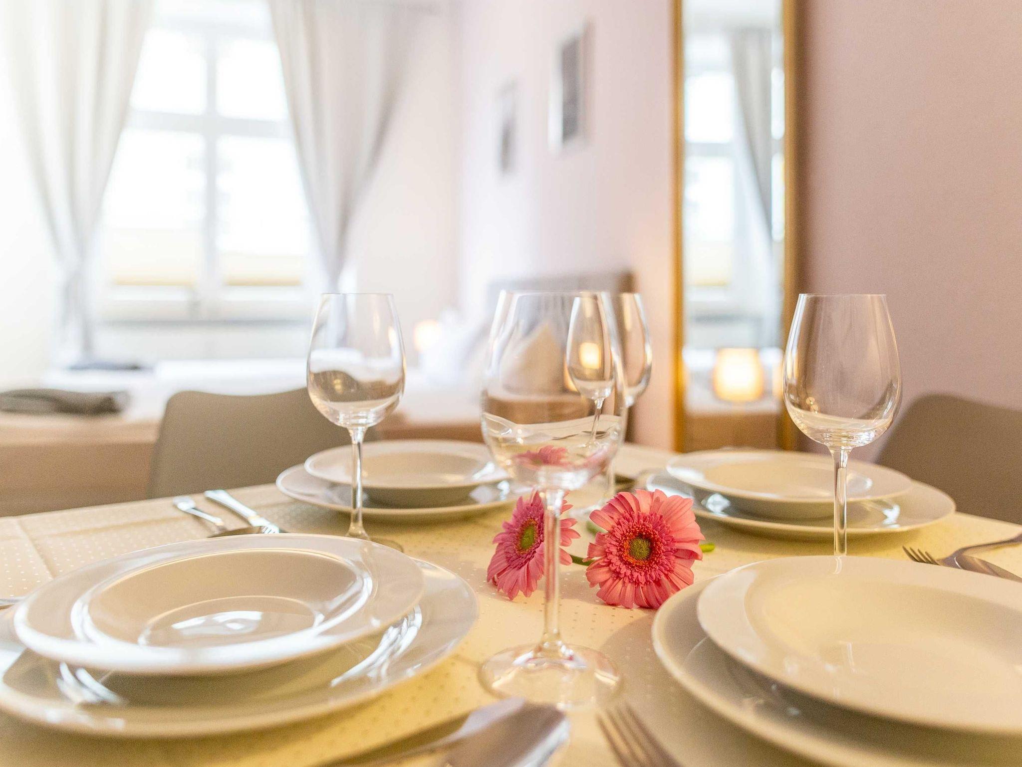 Jedes der drei Appartements ist geschmackvoll und individuell eingerichtet. Sie finden jeweils eine voll ausgestattete Küche vor.