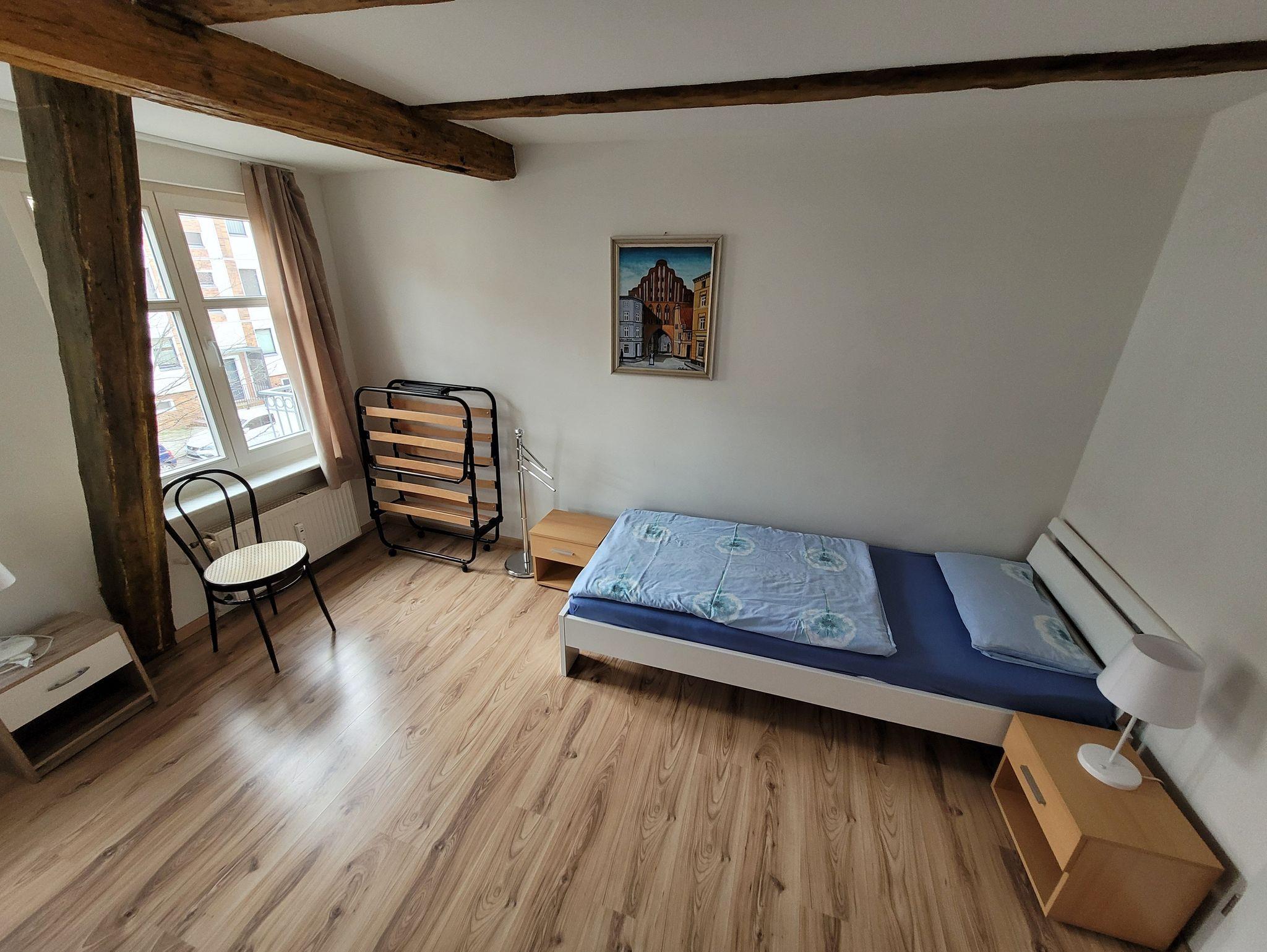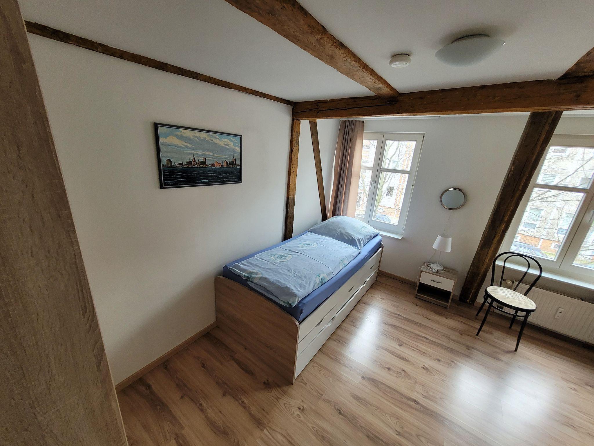 Die Ferienwohnung befindet sich im 2.OG in der Wasserstraße 12 und verfügt über ein Wohnzimmer, ein Schlafzimmer mit zwei Einzelbetten sowie ein Schlafzimmer mit 3 Einzelbetten, eine komplette Küche und Dusche/WC.