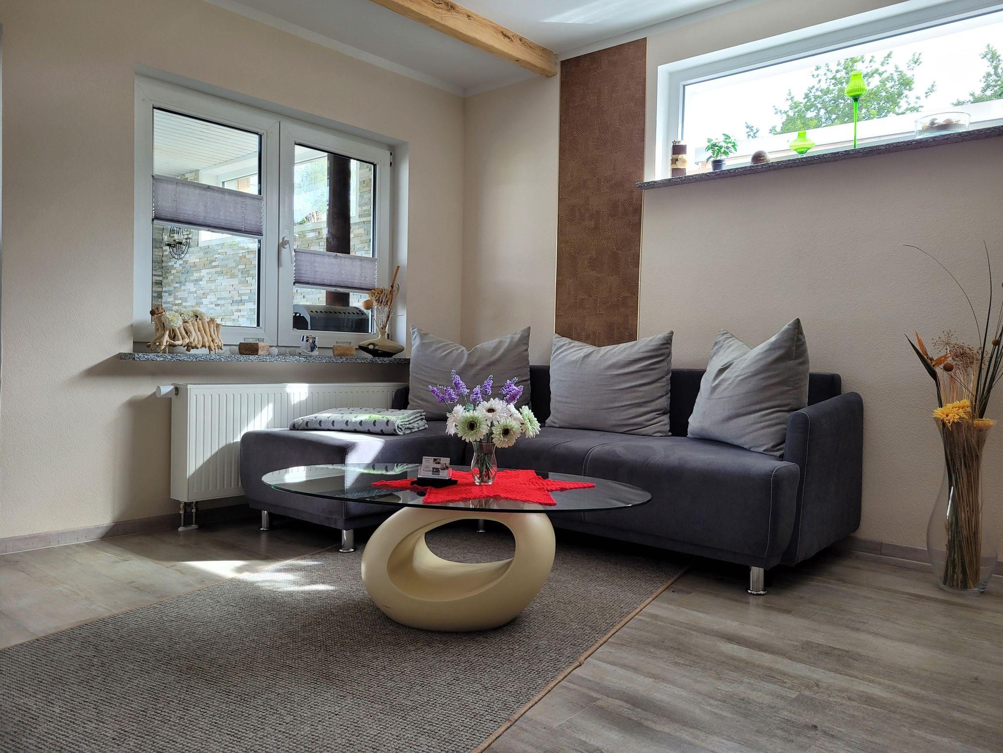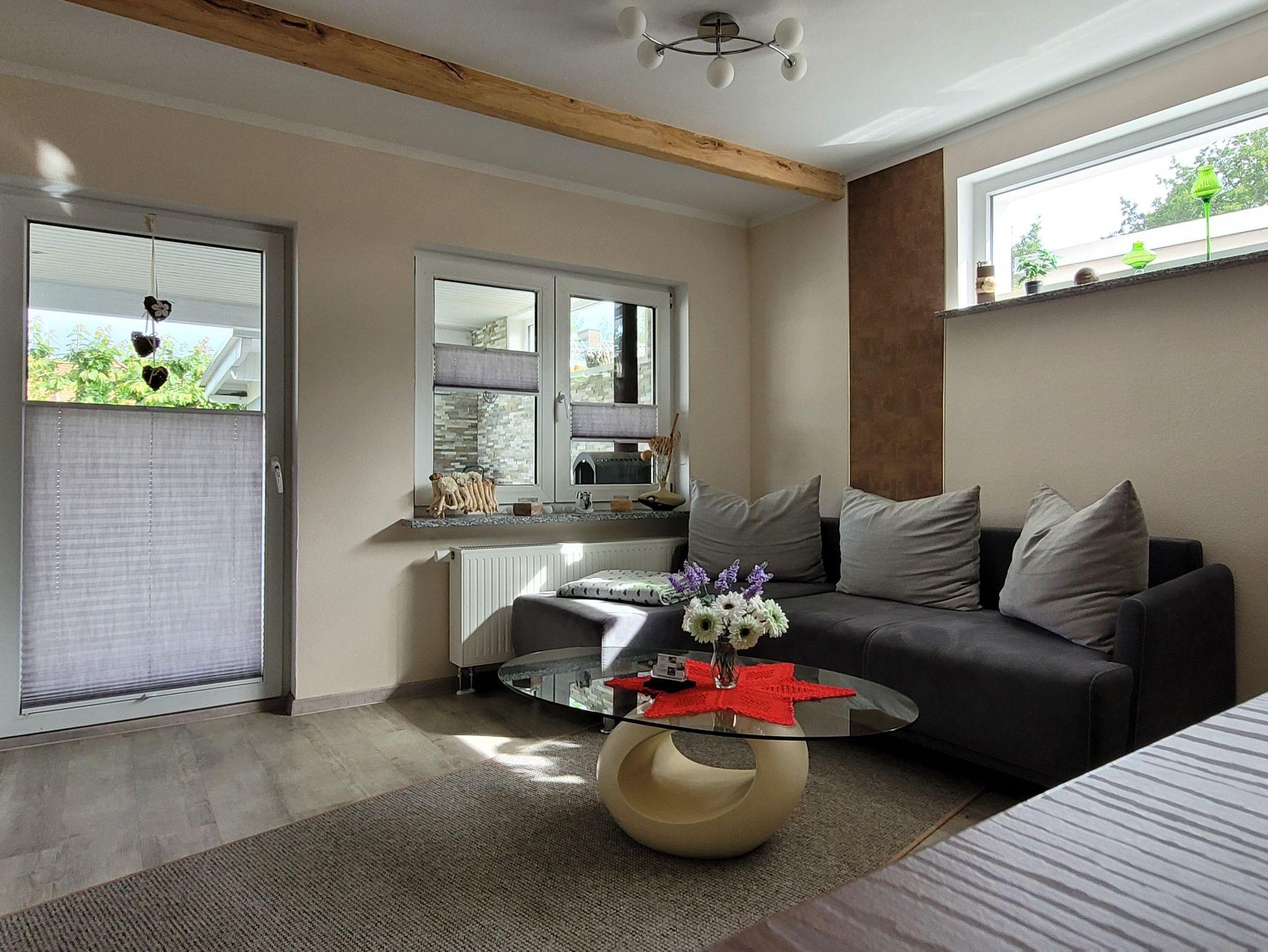 Modern eingerichtete 2-Raum-Ferienwohnung mit Schlafzimmer, Wohnzimmer mit offener Küche, Badezimmer und gemütlicher überdachter Sonnenterrasse. Die Bushaltestelle (Sophienweg) der Linie 4 befindet sich nur ca. 250m entfernt.