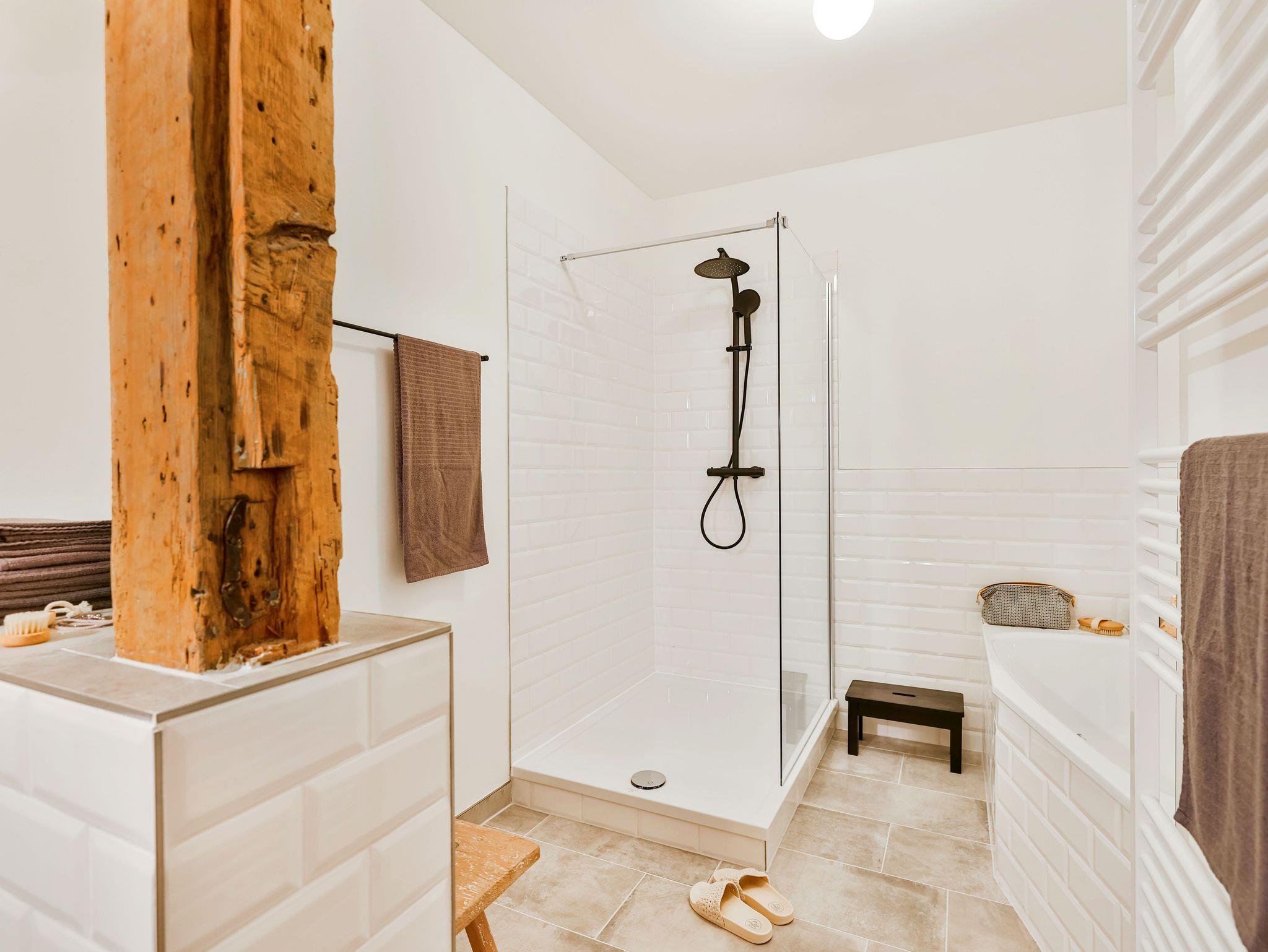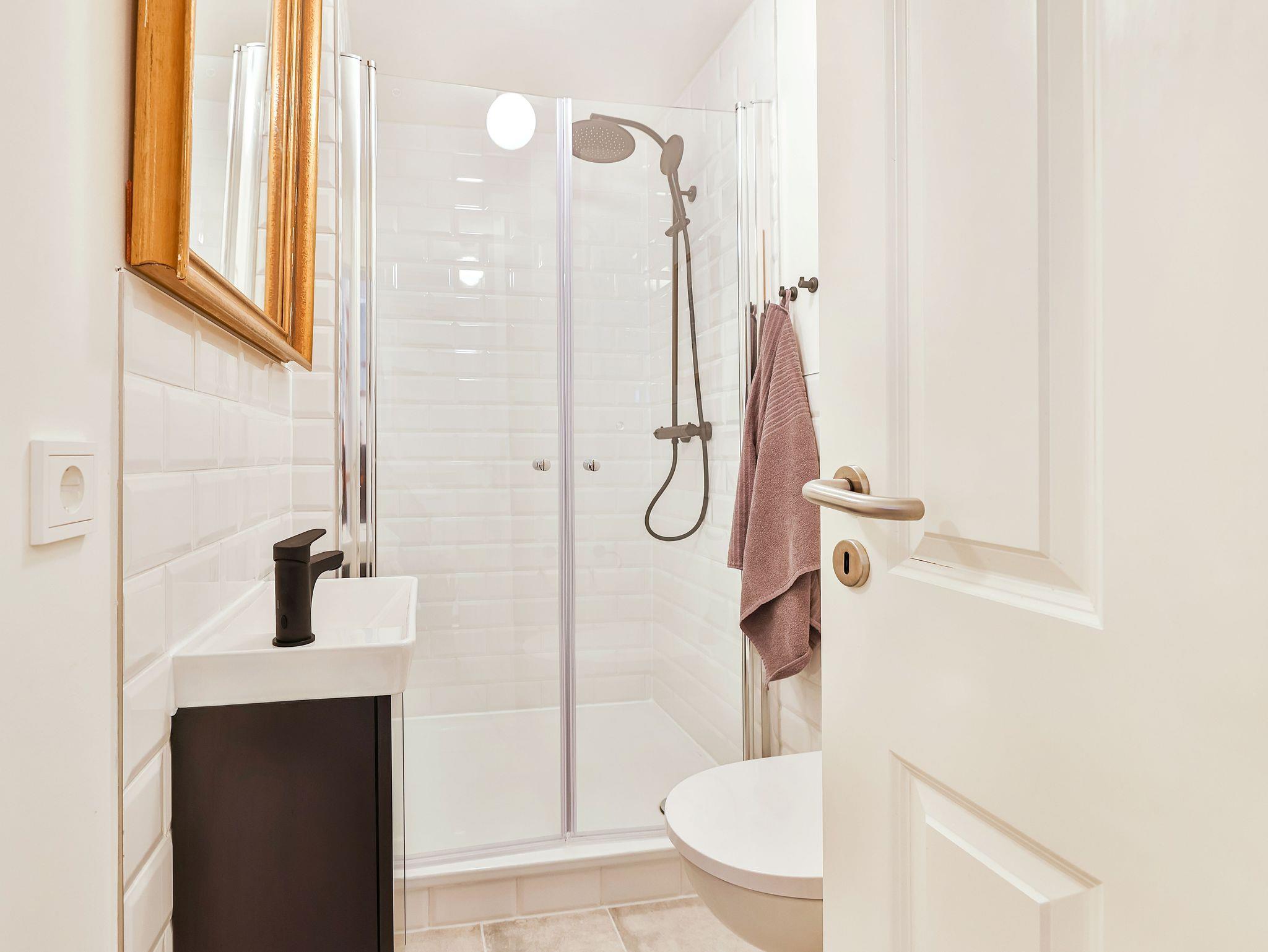 Im 1. OG gibt es 3 separate Schlafzimmer mit 3 Doppelbetten und das zweite Bad mit Dusche.