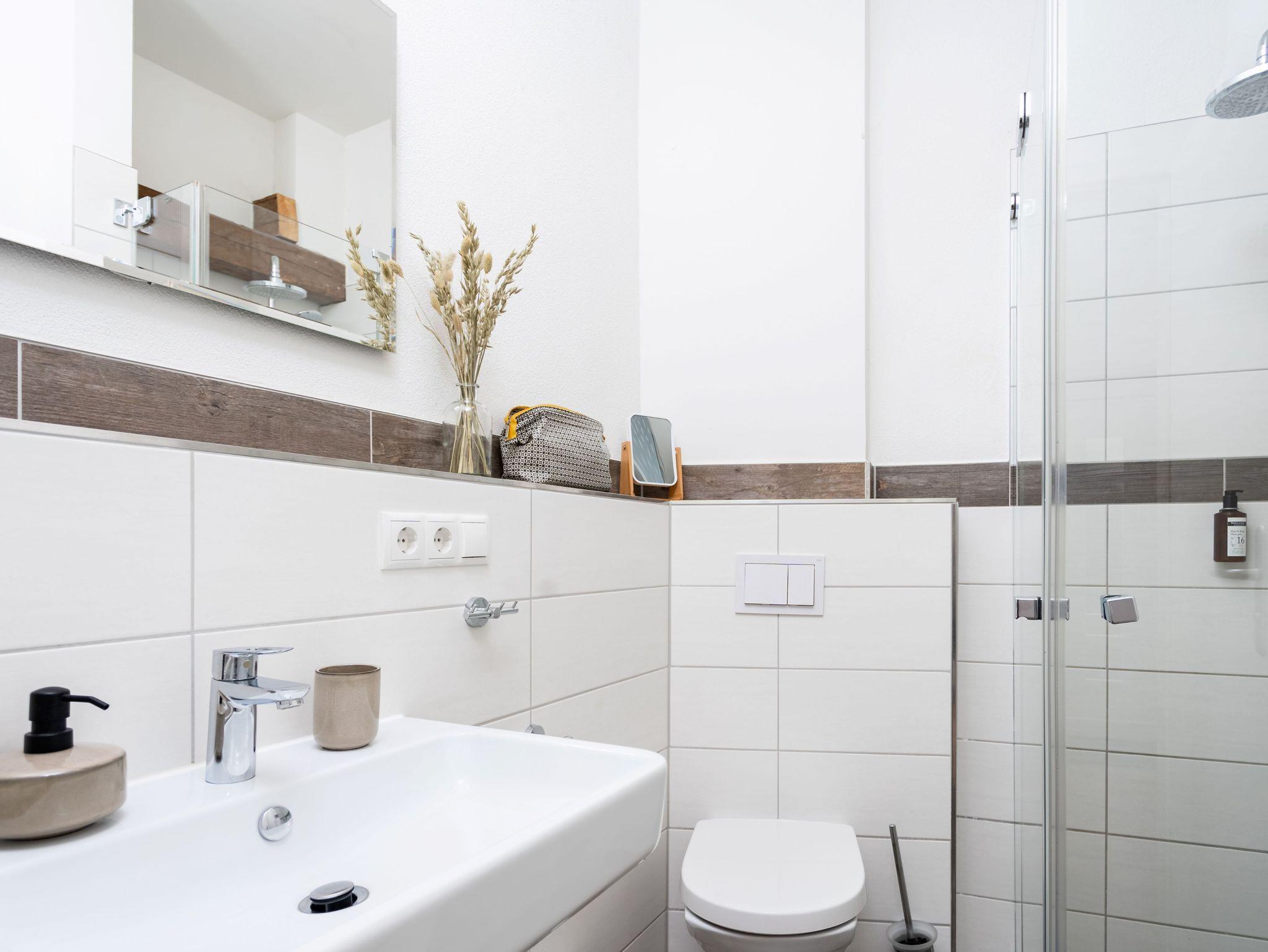 Unsere modernen Zwei-Raum-Apartments Classic befinden sich im 2. Obergeschoss. Sie verfügen über ein separates Schlafzimmer mit einem komfortablen Boxspringbett. Zur Ausstattung gehören eine gemütliche Sitzecke mit Esstisch, eine praktische Küchenzeile und ein Badezimmer mit Dusche.