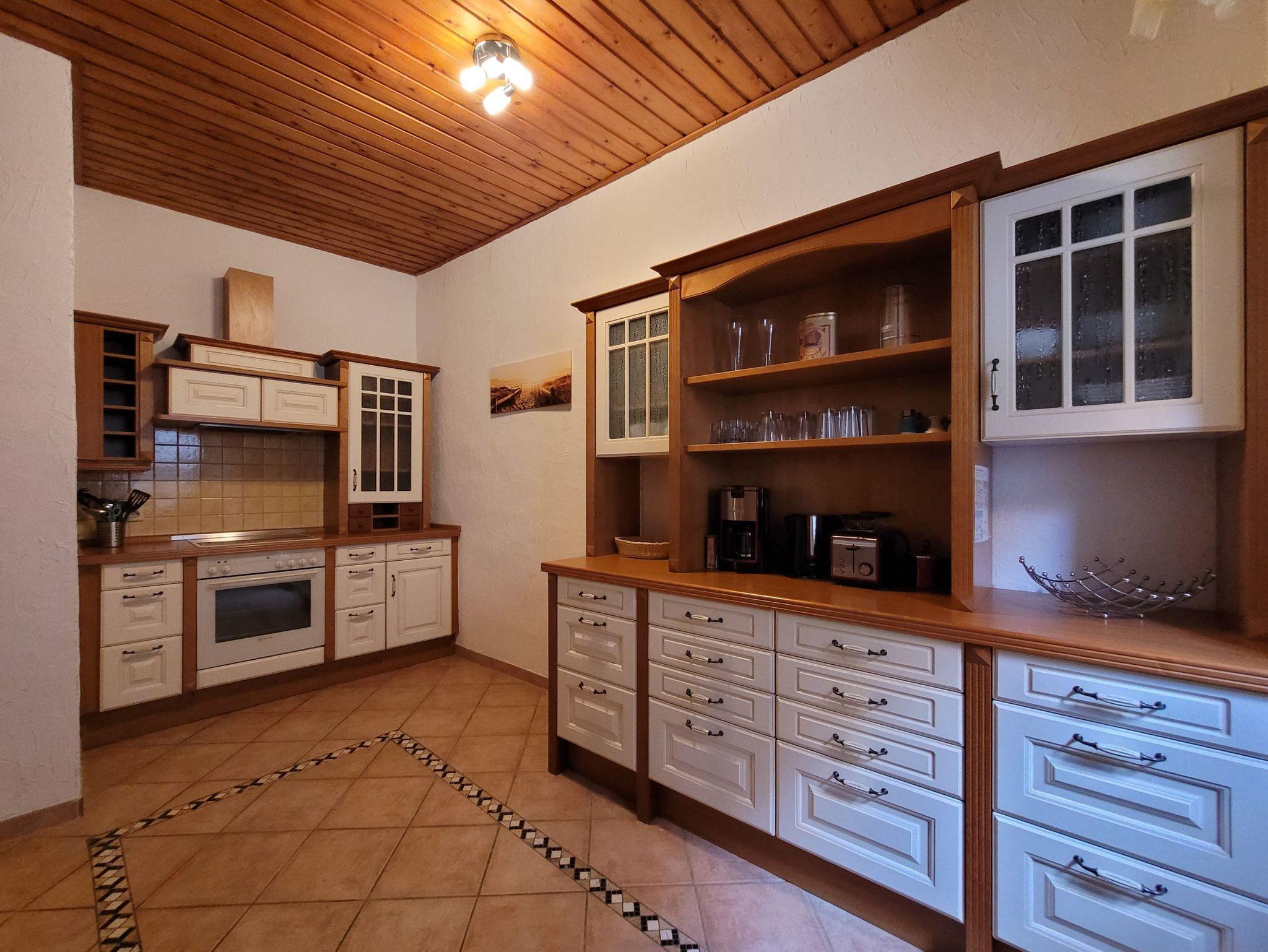 In der Küche sorgen ein Vierplattenherd mit Backofen und eine Mikrowelle für die Eigenversorgung. Ein Kühlschrank mit Tiefkühler sorgt für Frische - ein Toaster, ein Wasserkocher sowie eine Kaffeemaschine für ein leckeres Frühstück.