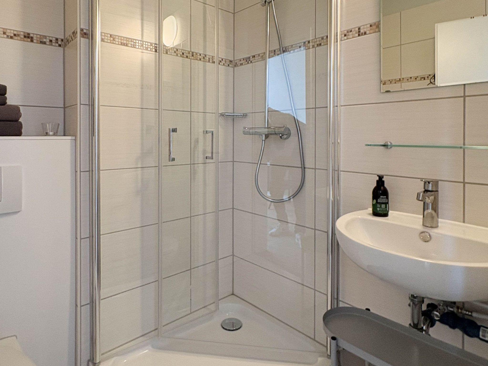 Das Apartment 5 verfügt über ein eigenes Duschbad und einen Wohn- bzw. Schlafraum mit 1 Doppelbett. Eine Aufbettung für Kleinkinder bis 3 Jahren ist möglich.