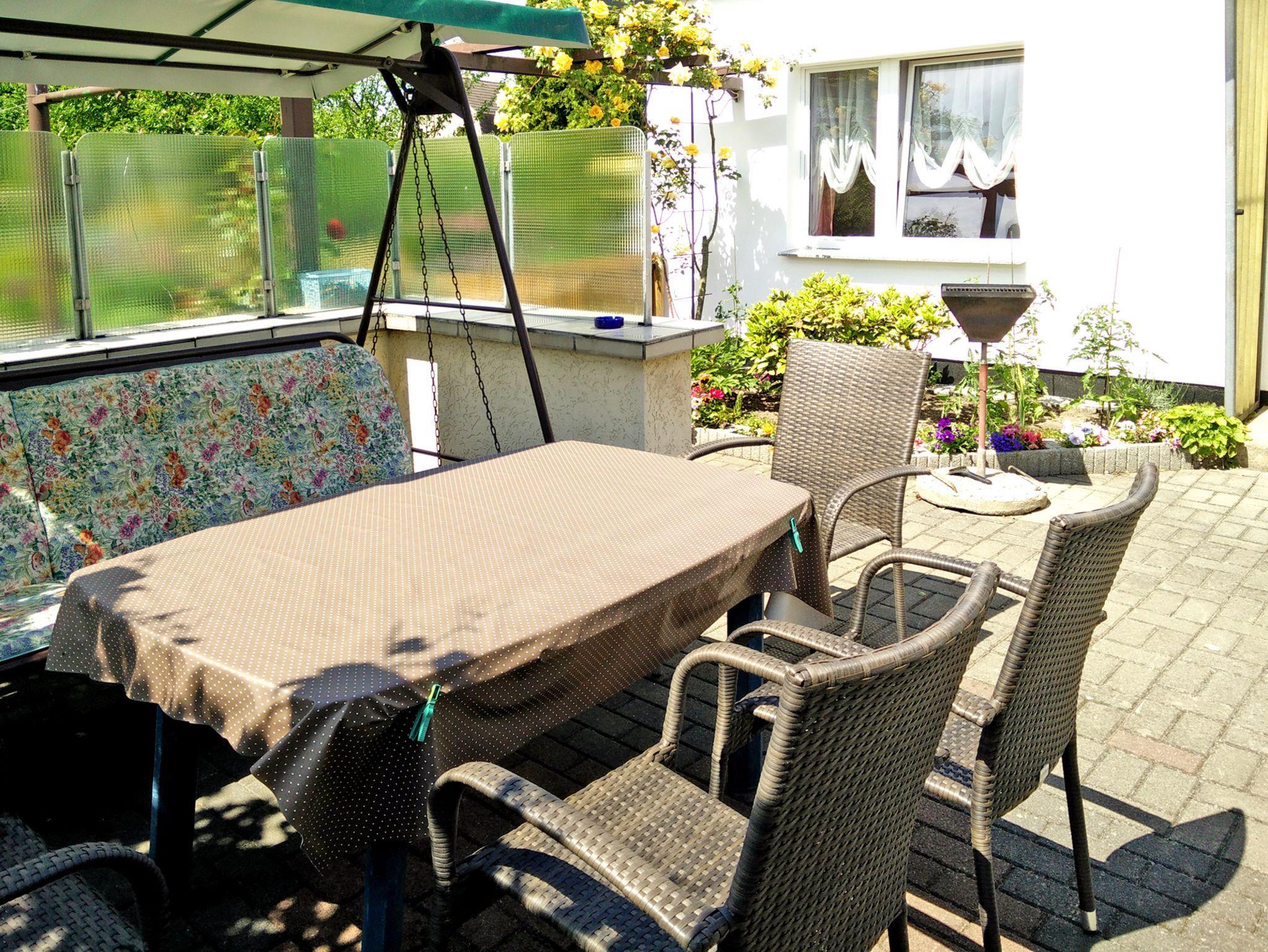 Es stehen eine kleine 1-Raum-Maisonettewohnung und eine 2-Raum-Ferienwohnung zur Verfügung. Im Garten gibt es eine sonnige Sitzecke mit Grillmöglichkeit und Hollywoodschaukel.