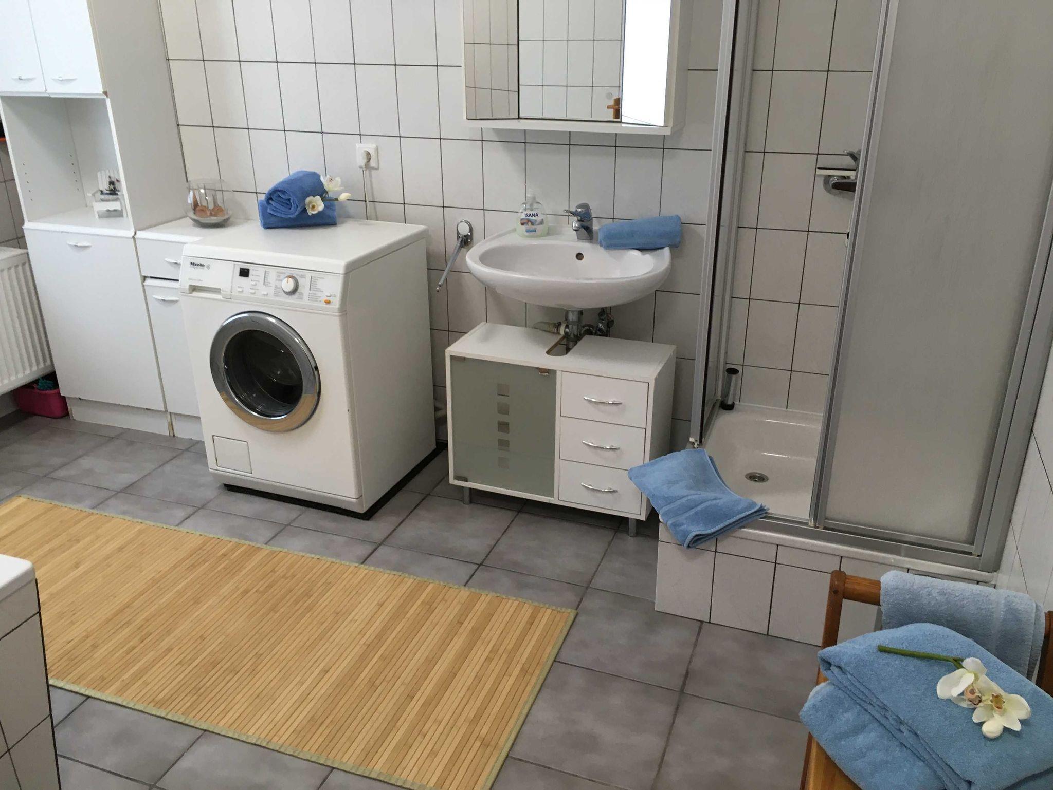 Zu Ihrer Erholung trägt auch das großzügige Badezimmer bei. Entspannen Sie sich in der Badewanne bei einem angenehmen Bad und sammeln Sie neue Kräfte.