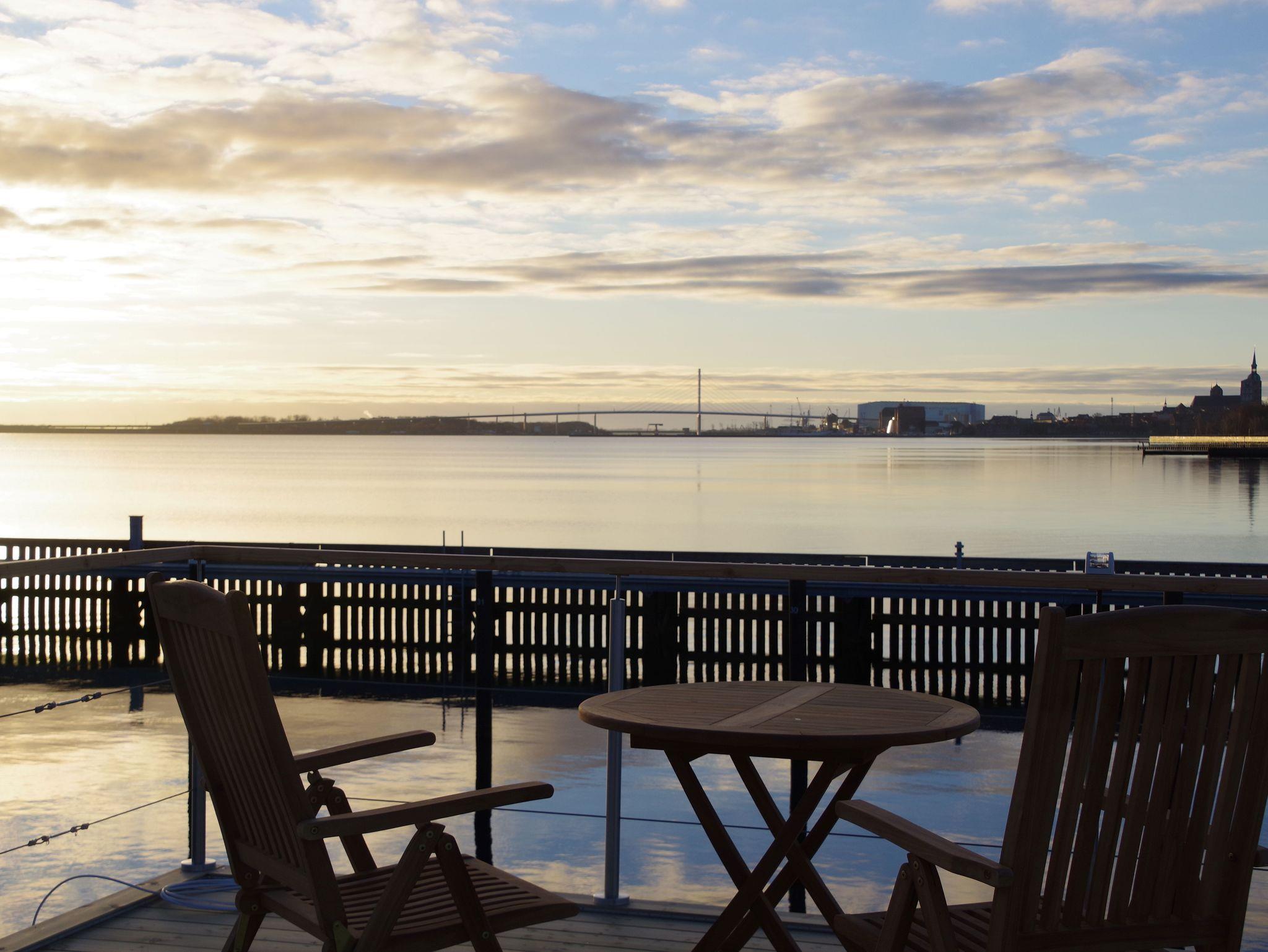 Genießen Sie das entschleunigte Leben auf dem Wasser, ohne auf den Komfort einer Ferienwohnung zu verzichten und entspannen Sie auf der Terrasse oder dem großen Sonnendeck mit Blick auf Rügen und die Altstadt von Stralsund.