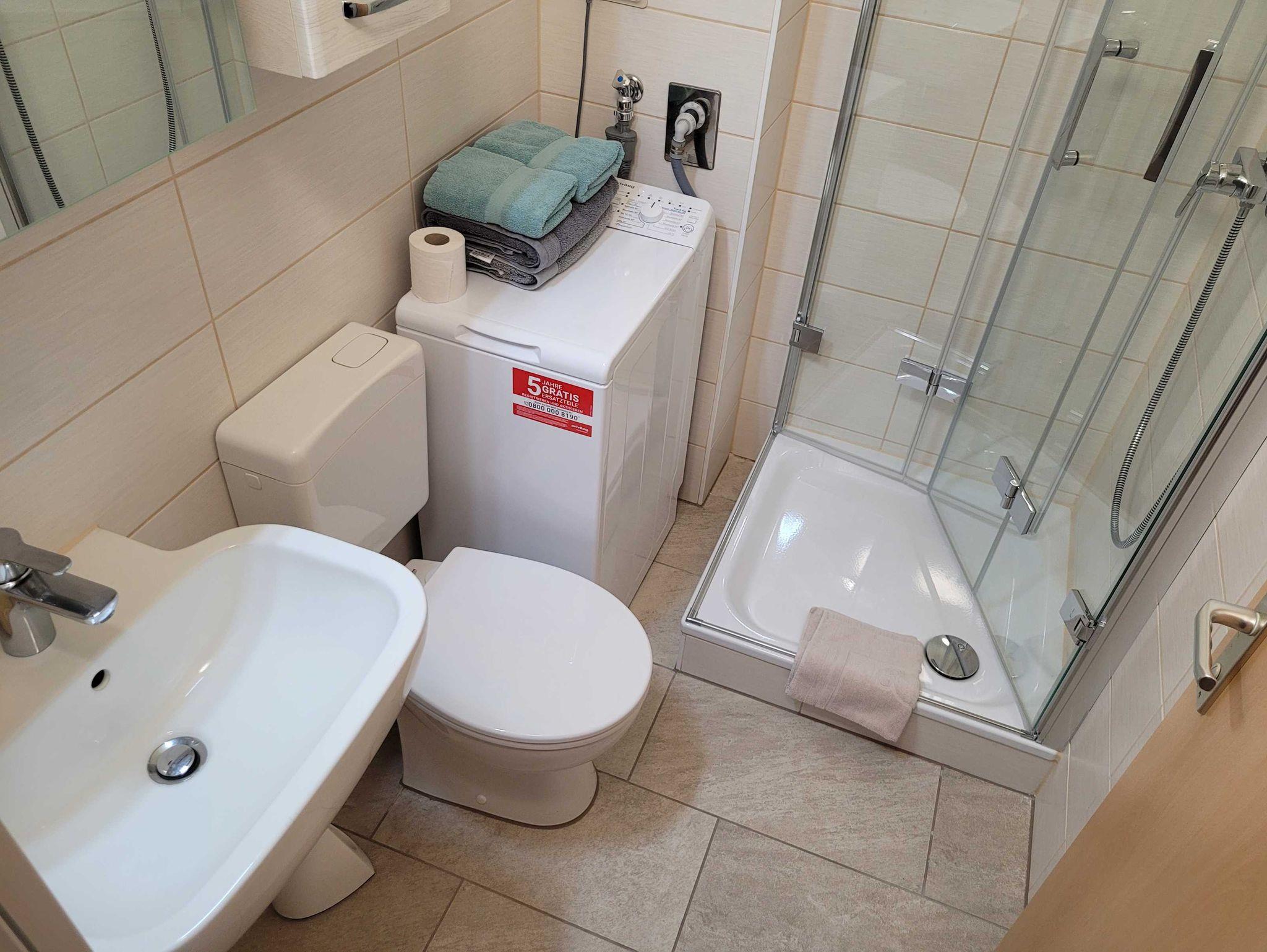 Die Wohnung verfügt über ein Schlafzimmer mit Doppelbett, ein Wohnzimmer, Wohnküche, Bad mit Dusche/WC und ein Balkon in Süd-West-Lage.