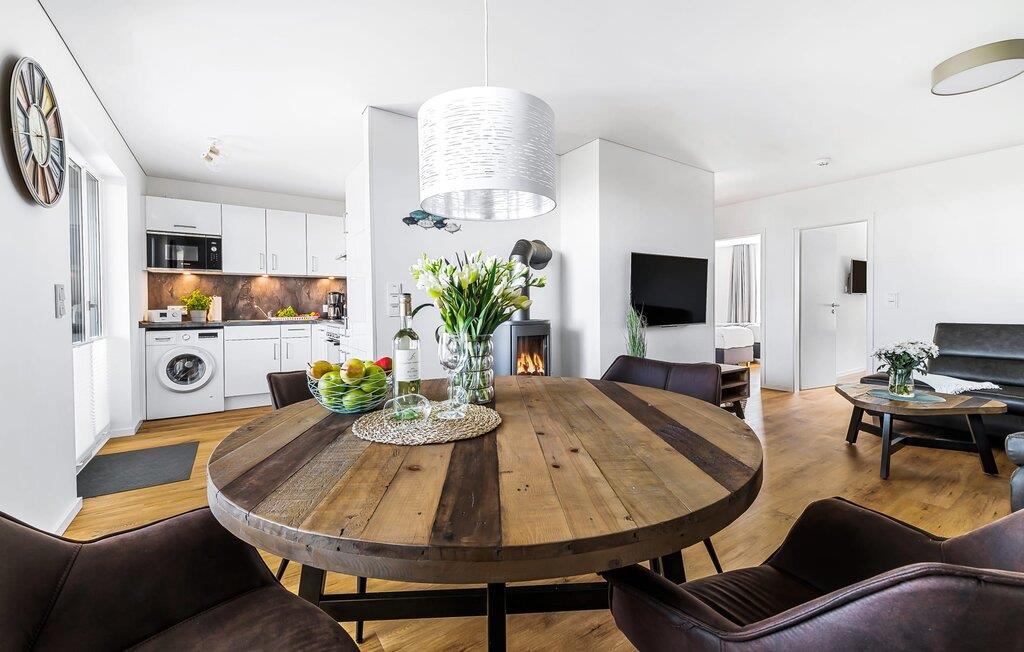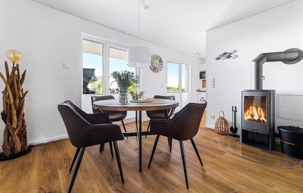 Det bliver romantisk foran pejsen i den hyggelige sofa. WiFi og Smart TV med Telekom Home Entertainment-program sørger også for indendørs underholdning.