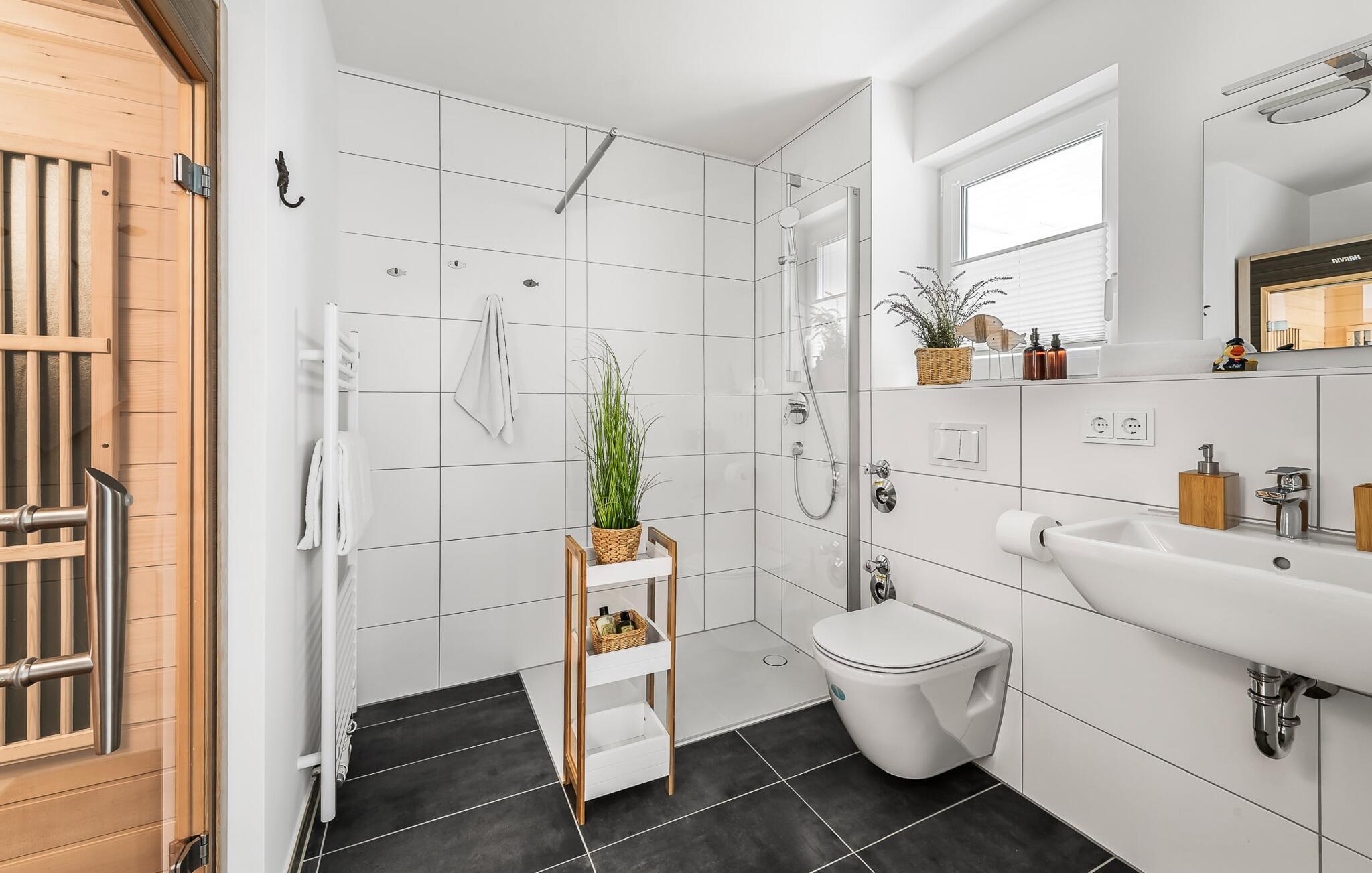Efter en lang gåtur på stranden er badeværelset i BEACH SHELL en absolut oase af velvære! Badeværelset har brusebad i gulvniveau og infrarød sauna. Ren afslapning!