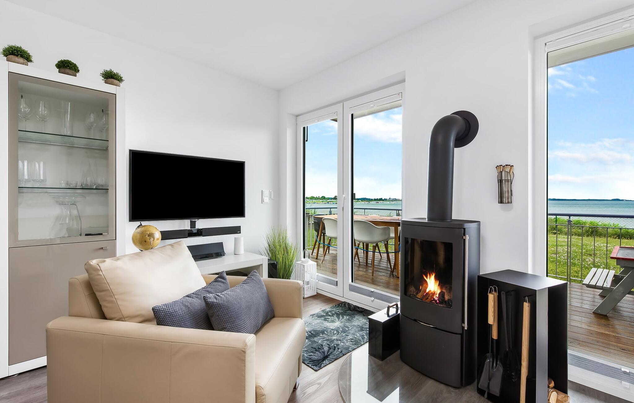 Den største vanedannende faktor ved dette feriehus er dog tagterrassen! Panoramaudsigten over Slien er overvældende, og I er lidt tættere på himlen. At sidde heroppe og slappe af i solen, se aktiviteten på vandet og simpelthen ikke lave noget er en oplevelse, som I sent vil glemme.