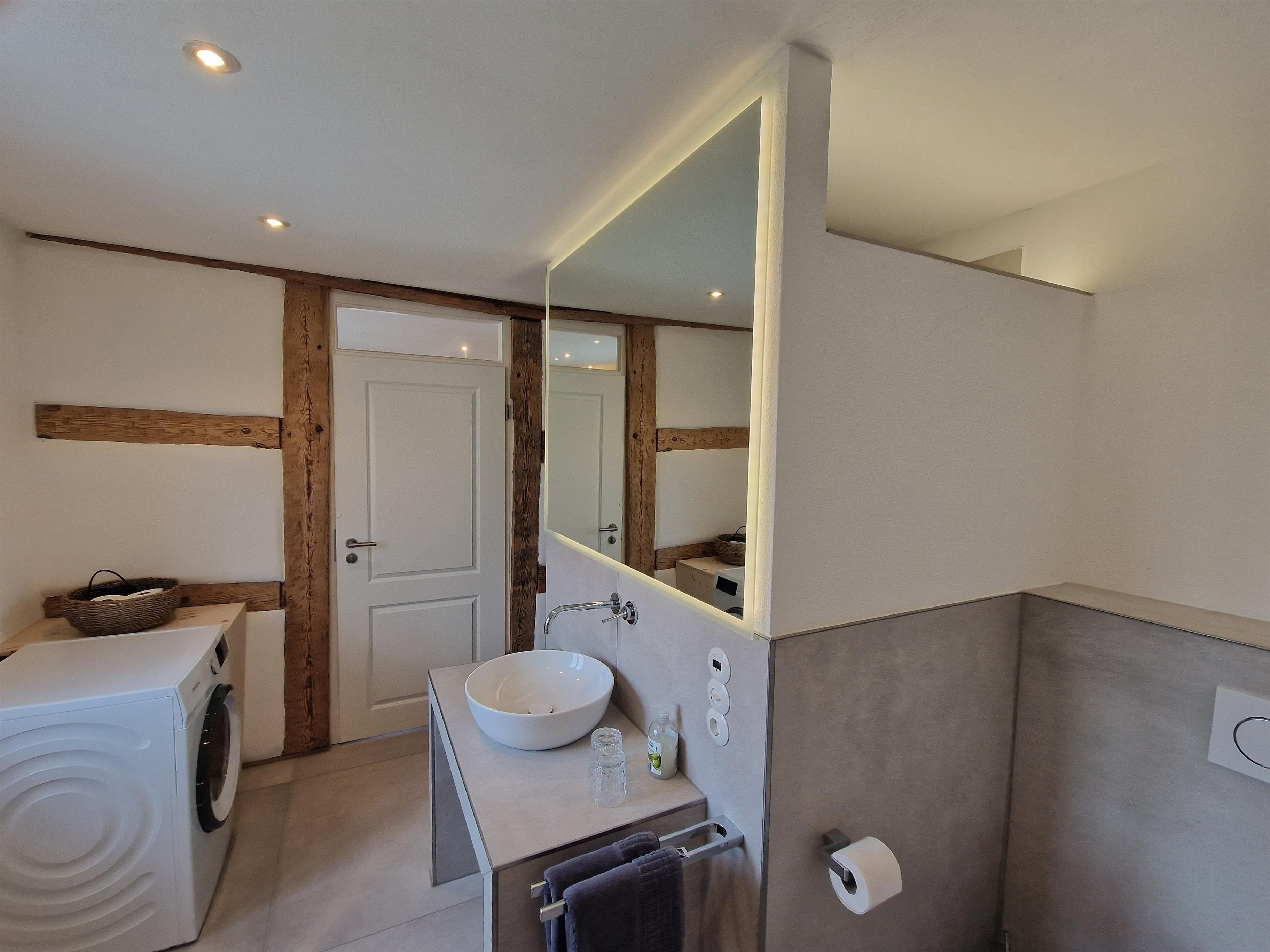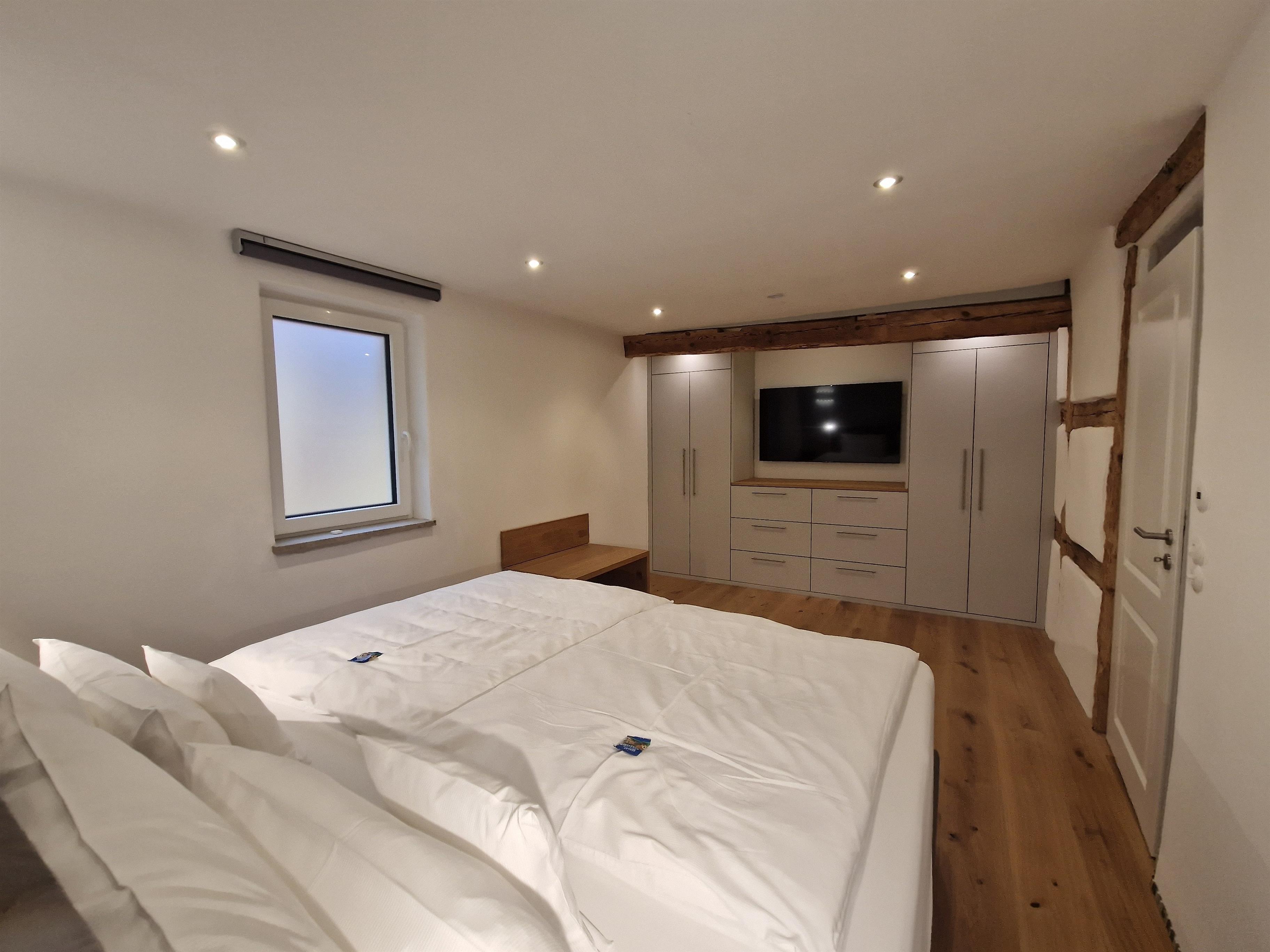 Das großzügige Schlafzimmer ist mit einem komfortablen Boxspringbett (200x200cm), Einbauschrank, TV und weiteren Annehmlichkeiten ausgestattet. In der voll ausgestatteten Wohnküche mit Leder-Sitzecke, Essplatz und moderner Technik lässt es sich hervorragend entspannen und kochen. Das hochwertige Bad mit Regendusche und Waschtrockner sowie eine E-Ladestation im Hof ( gegen Gebühr ) runden das Angebot ab.