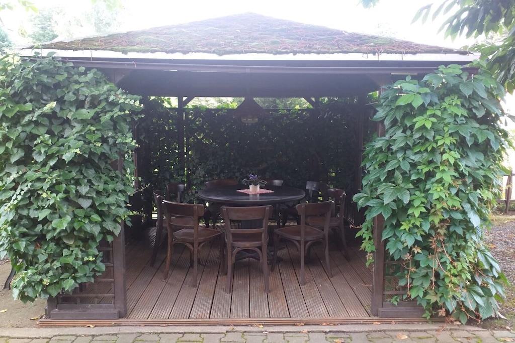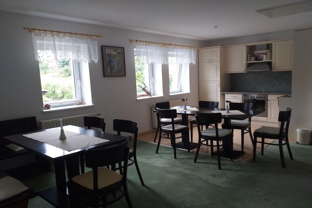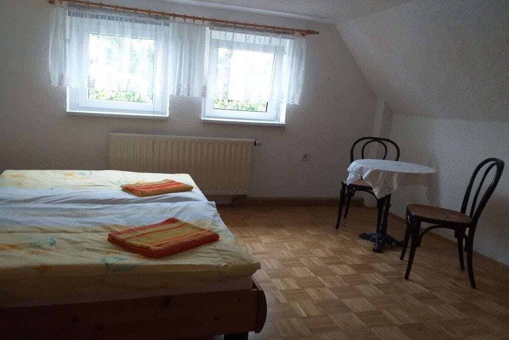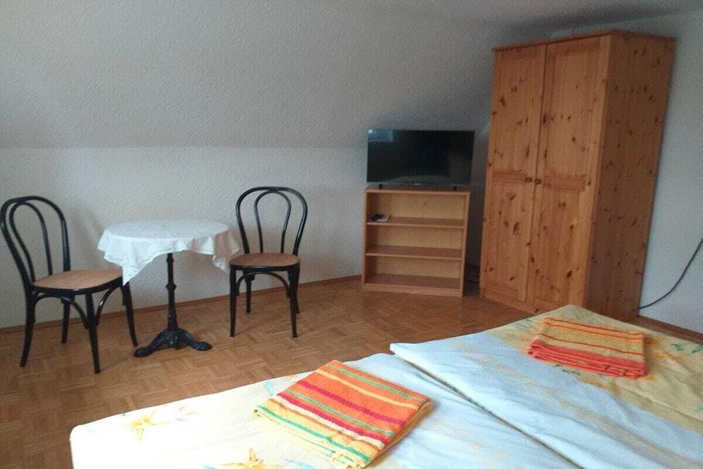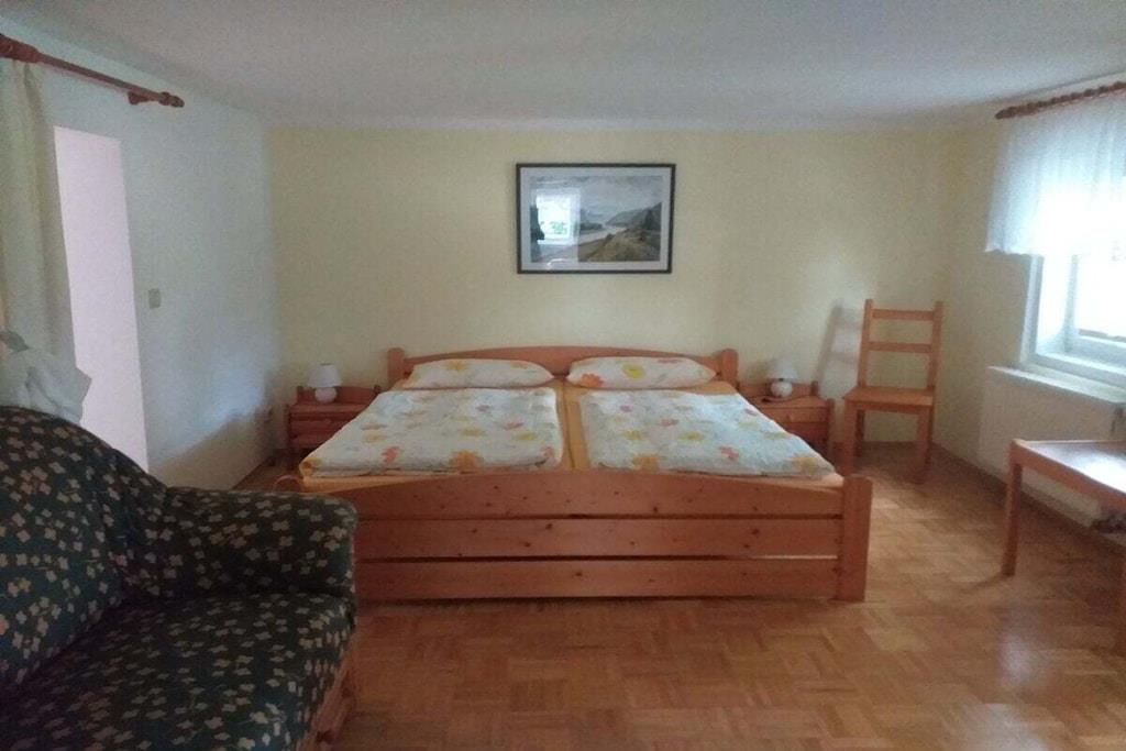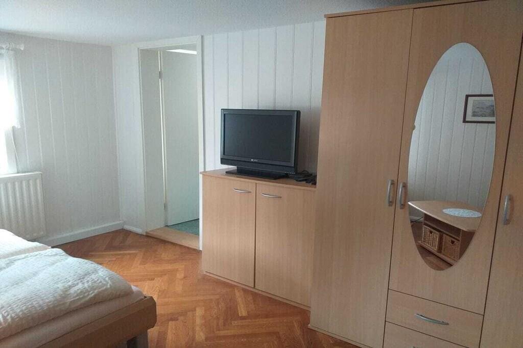 På 1. etage: (soveværelse(, dobbeltseng, Fjernsyn), soveværelse(, dobbeltseng, Fjernsyn), soveværelse(, dobbeltseng, Fjernsyn), loungemøbler(, , tekøkken, spisebord, kakkelovn, kogeplade, elkedel, brødrister, kaffemaskine, ovn, mikrobølgeovn, opvaskemaskine , køleskab, fryser)) Loft: (soveværelse(, toilet, enkeltseng, dobbeltseng, Fjernsyn, badekar, håndvask), soveværelse(, toilet, enkeltseng, dobbeltseng, Fjernsyn, badekar, håndvask)) , , Internetadgang, vaskemaskine, varme, terrasse(havemøbler, Haveskur), parkering, strygebræt, Vaskeripakke mod et gebyr