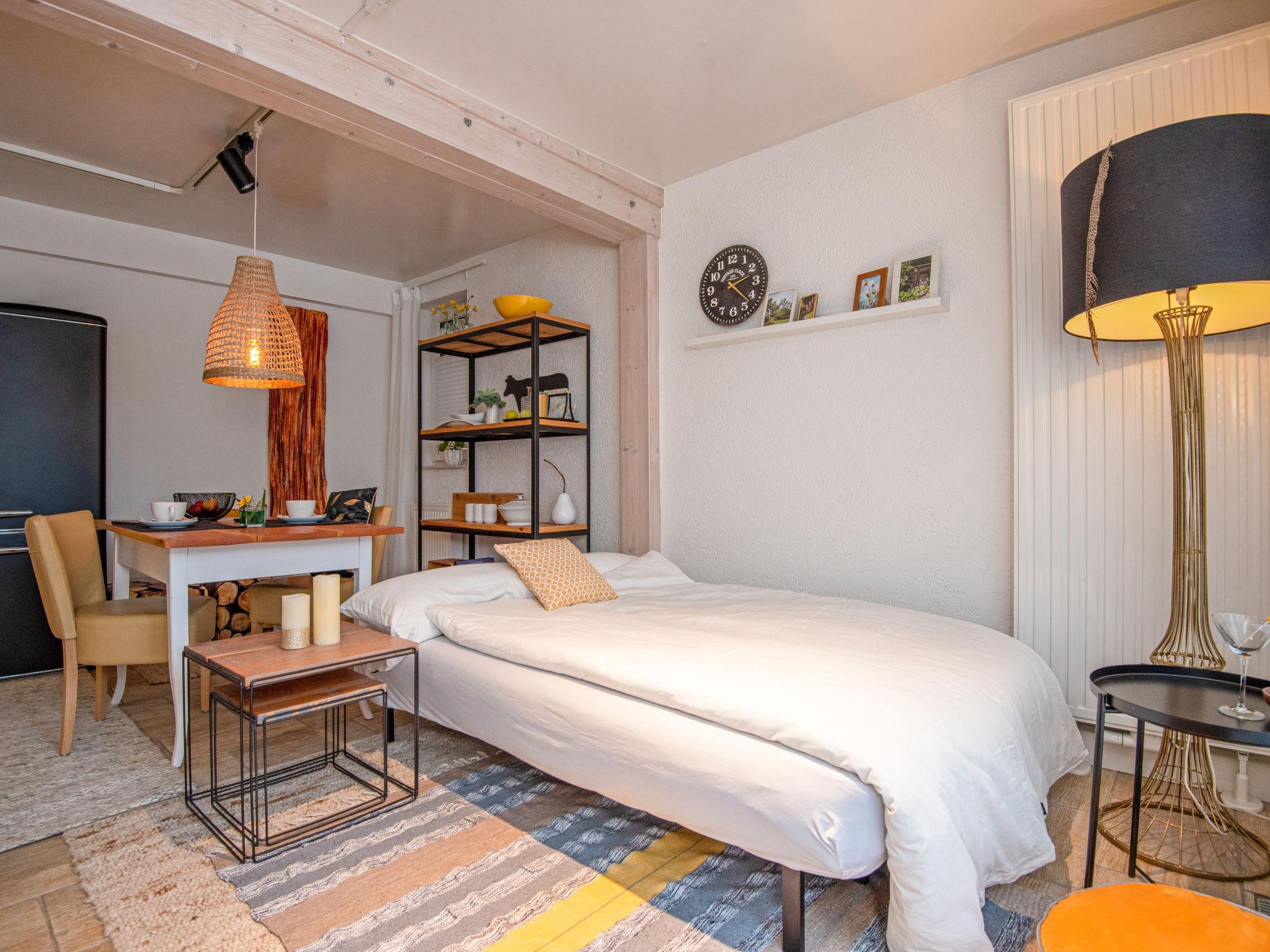"Eliese", 2-room apartment 57 m2, on the ground floor. Renovated in 2021, modern and cosy furnishings: living/sleeping room with 1 double sofabed, dining table and cable TV (flat screen). 1 room with 1 double bed. Kitchenette (oven, dishwasher, 4 ceramic glass hob hotplates, toaster, kettle, microwave, freezer, electric coffee machine) with bar. Sep. WC, bath/shower/WC. Gas heating. Patio 30 m2. Terrace furniture, barbecue (portable), deck chairs (2). Facilities: washing machine, baby cot. Internet (WiFi, free). Parking (1 car). Please note: non-smokers only. Maximum 2 pets/ dogs allowed. Smoke alarm.