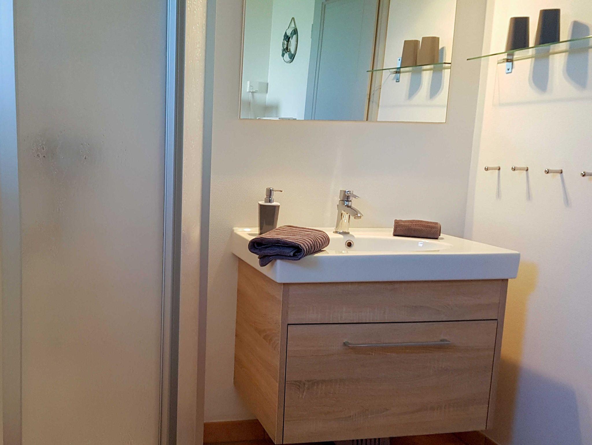 Die Ferienwohnung ist 45m² groß, ebenerdig und befindet im Anbau eines reetgedachten Hauses in Stahlbrode mit separatem Eingang. Die gemütlich und modern eingerichtete Ferienwohnung verfügt über ein Schlafzimmer, Wohnzimmer, Küche und einem Bad mit Dusche und WC. Im Schlafzimmer befindet sich ein Doppelbett (160x200) mit Nachtschränken, Kommode, Sitzbank und kleinem Kleiderschrank. Vom gemütlichen Wohnzimmer mit Ecksofa, Schwingsessel, Schreibtisch, Fernseher und Radio, haben Sie einen Blick über die Felder und im Frühjahr und Herbst sogar bis zum Wasser. Die Küche ist ausgestattet mit einer Küchenzeile, Herd mit Backofen, Kühlschrank mit Gefrierfach, Mikrowelle, Kaffeemaschine, Wasserkocher, Toaster, Eierkocher und einem Esstisch für zwei Personen. Der Garten sowie die Sitzecke und Grill können mitbenutzt werden. Vor dem Haus ist ein Pkw-Stellplatz vorhanden. In dieser Ferienwohnung wird Strom (auch Elektroheizung) vor Ort nach Verbrauch abgerechnet.