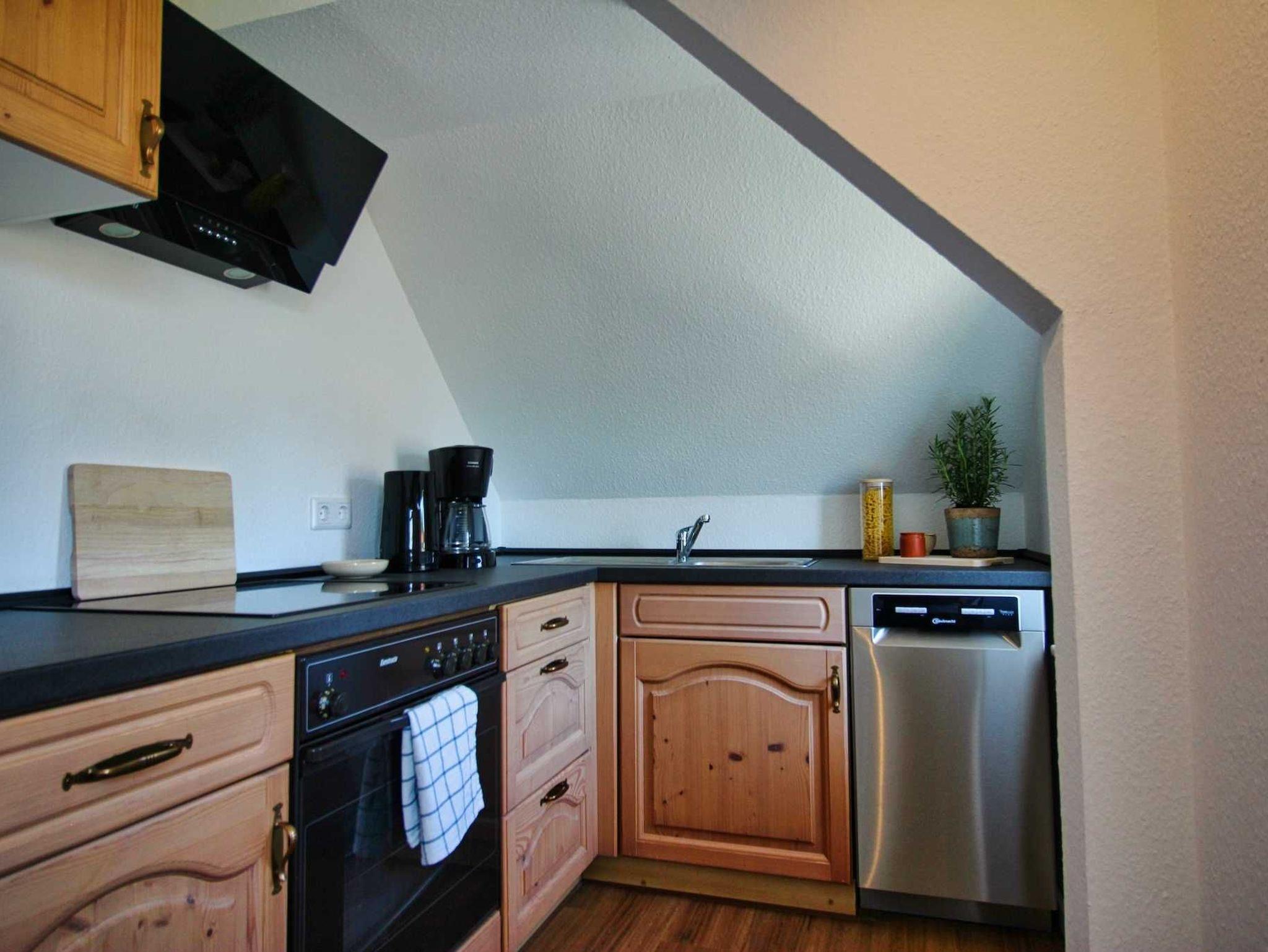 Die kleine Giebelwohnung liegt im Dachgeschoss des Ferienhauses Makrele und versprüht einen ganz