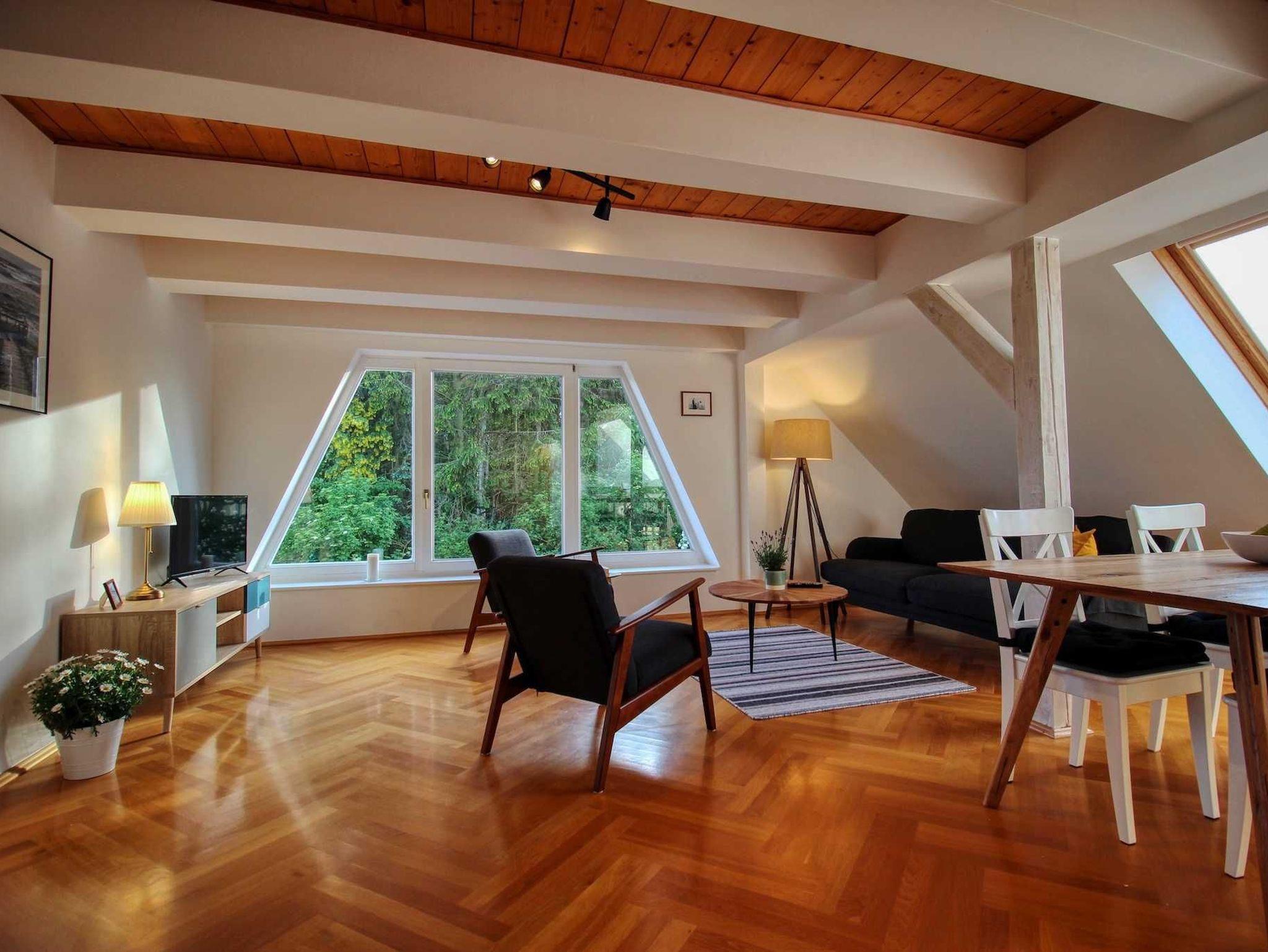Die Dachgeschosswohnung bietet den wohl schönsten Ausblick im ganzen Ferienhaus Makrele! Durch die großflächigen Fenster im geräumigen Wohn- und