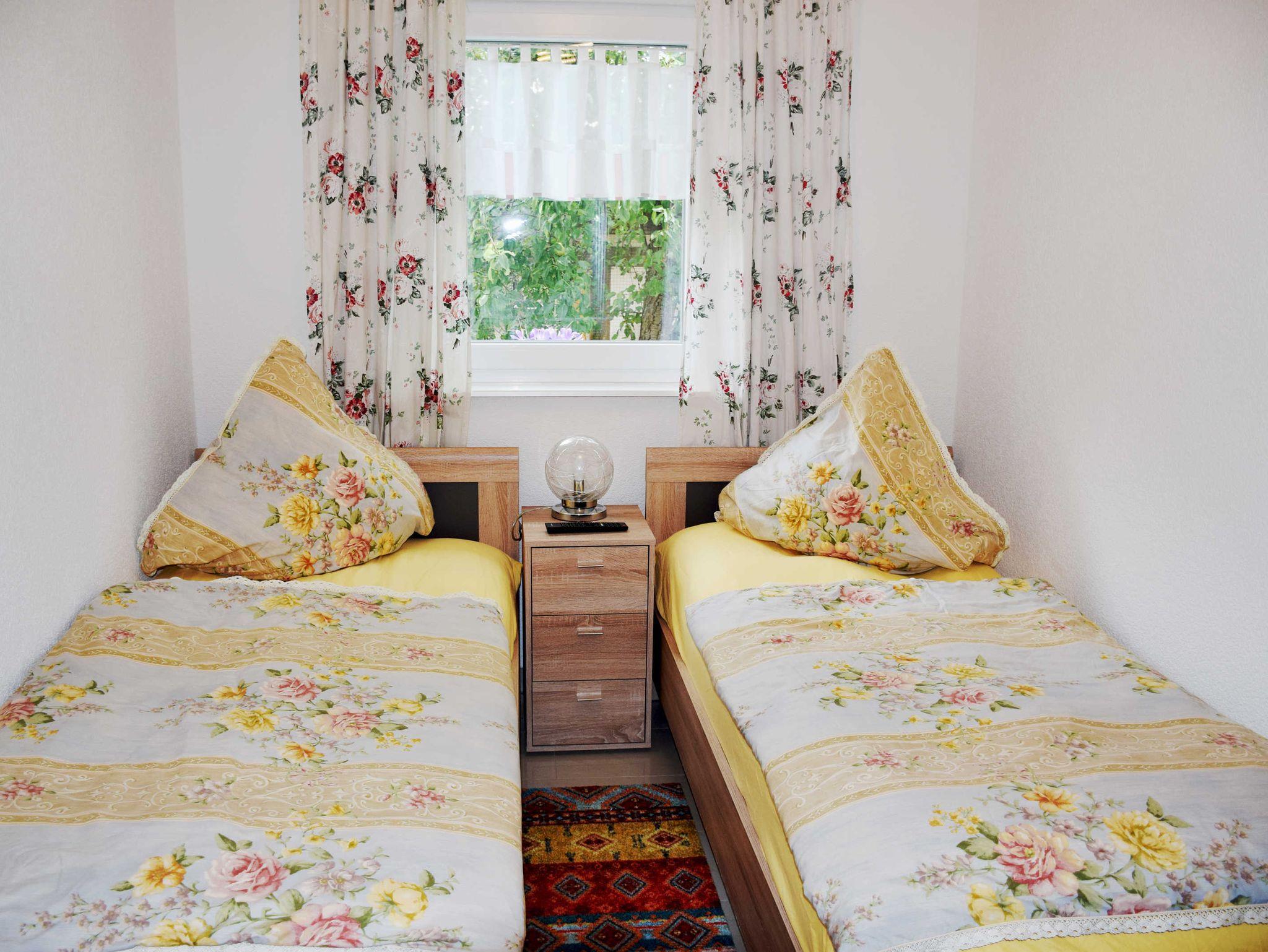 Außerdem gibt es ein kleines Schlafzimmer mit zwei Einzelbetten (je 90x200 cm, inkl. Bettwäsche).