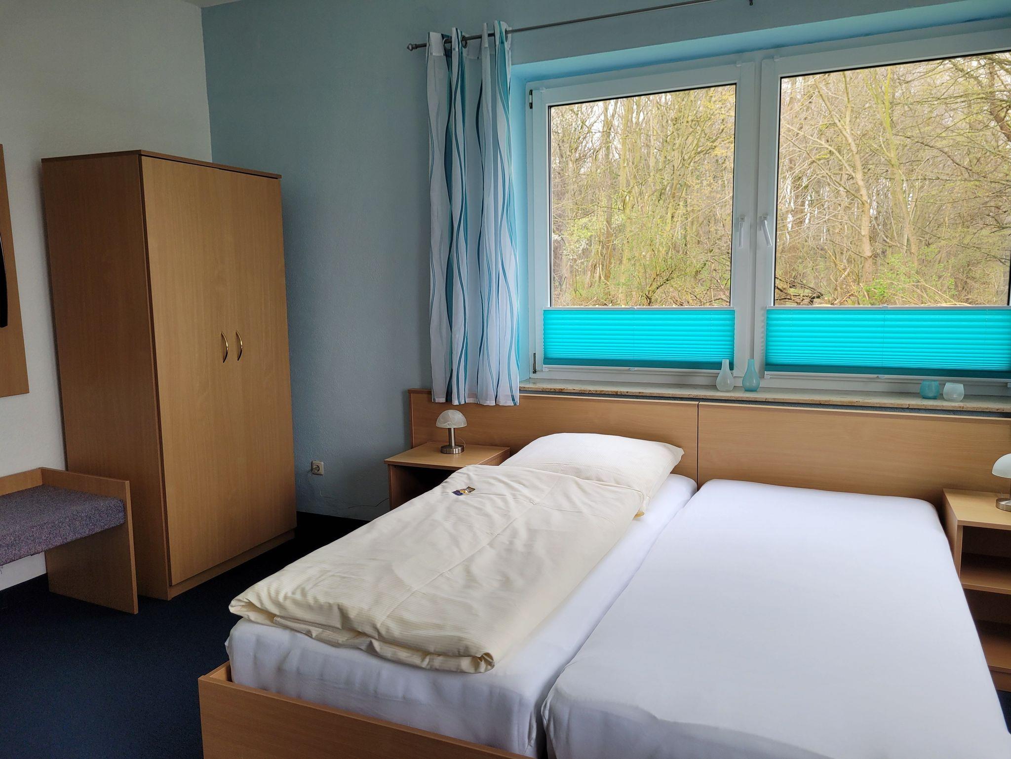 Unser Doppelzimmer Gartenblick liegt ruhig im Erdgeschoss und bietet einen wunderschönen Blick in den Garten