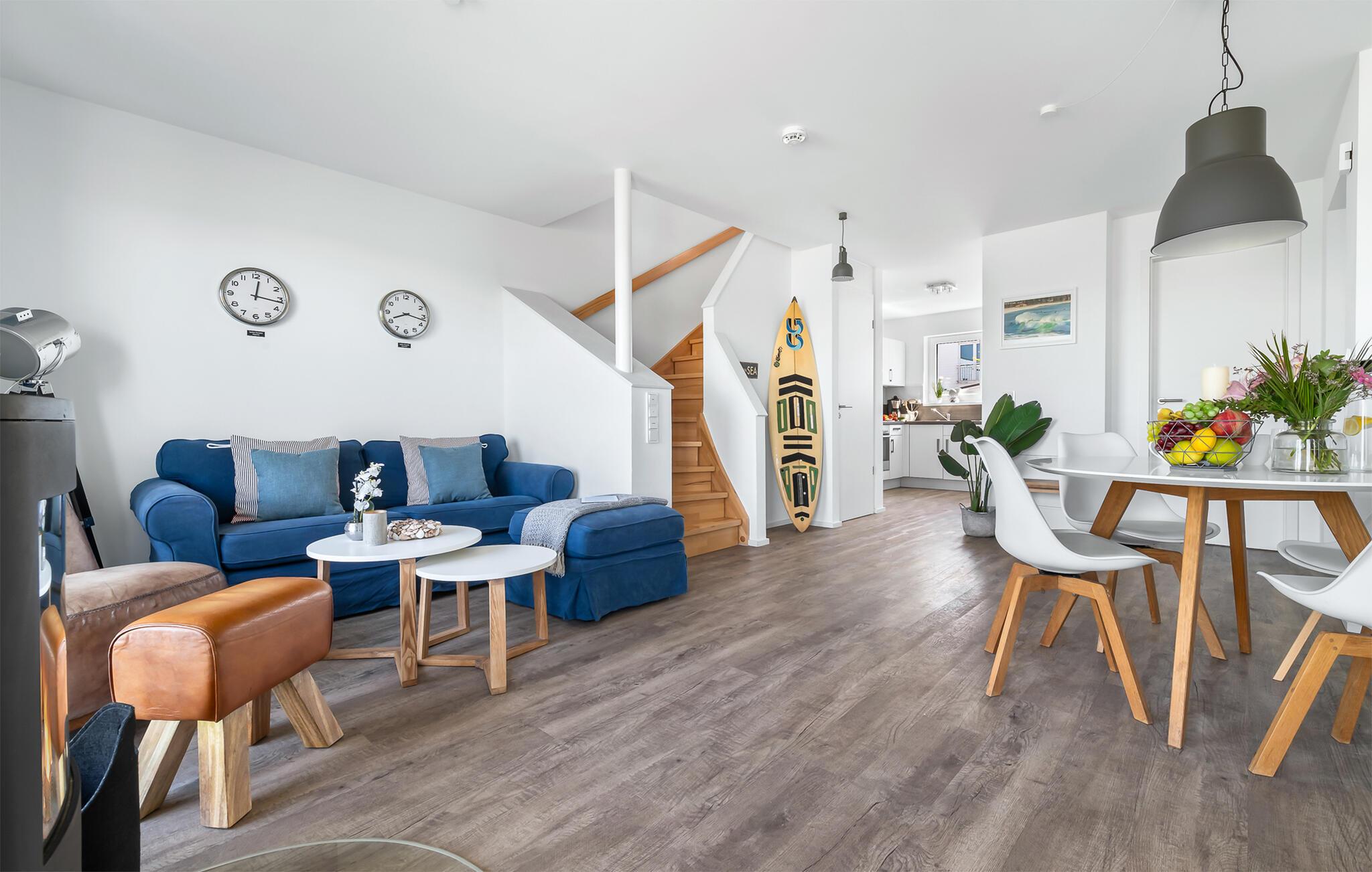 Opkaldt efter surfer-oasen på Australiens Gold Coast, tilbyder Surfers Paradiese-feriehuset et afslappet strandhus og surferatmosfære. En afslappet lethed med strandhus-flair løber gennem hele ejendommen, feriefølelse garanteret. Sol og vand så langt som øjet kan se Denne ejendom har en terrasse direkte på Schlei på alle niveauer. Højdepunktet: den store tagterrasse med sol hele dagen lang.