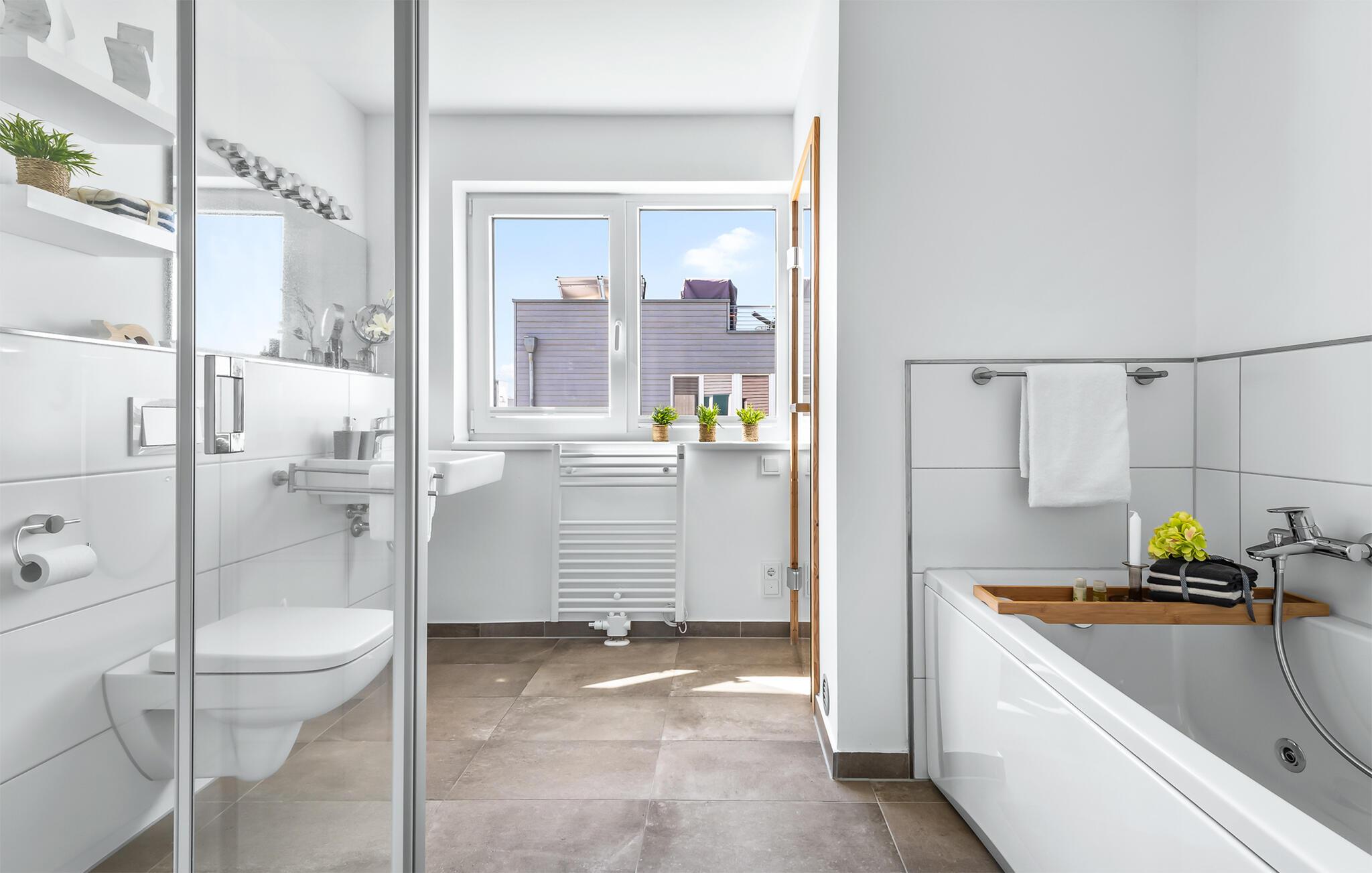 Også på dette niveau er badeværelset med udsigt over havnen. Finsk sauna med udsigt til vandet og spabad får spahjerterne til at banke hurtigere.
