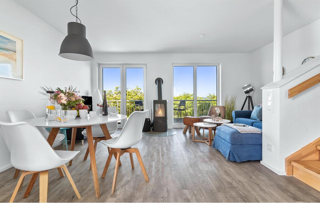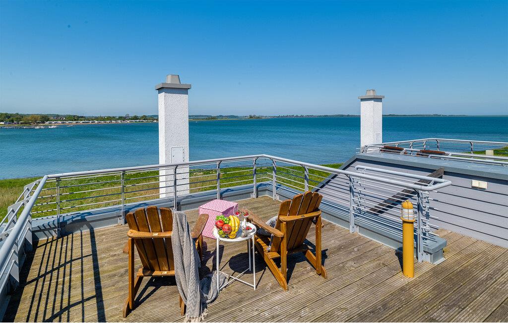 Feriehusets afslapningsområde er på første sal. Gæsterne kan falde i søvn i to soveværelser og vågne op til udsigten over vandet. Det store soveværelse vender ud mod Schlei og er indrettet med en dobbeltseng. Med en morgenkaffe kan du se ænder, gæs og østersfangere vågne op på den tilstødende terrasse, mens sivene fra Schleiufer svajer blidt i vinden. Det andet soveværelse har udsigt over lystbådehavnen og har to enkeltsenge, der kan skubbes sammen.