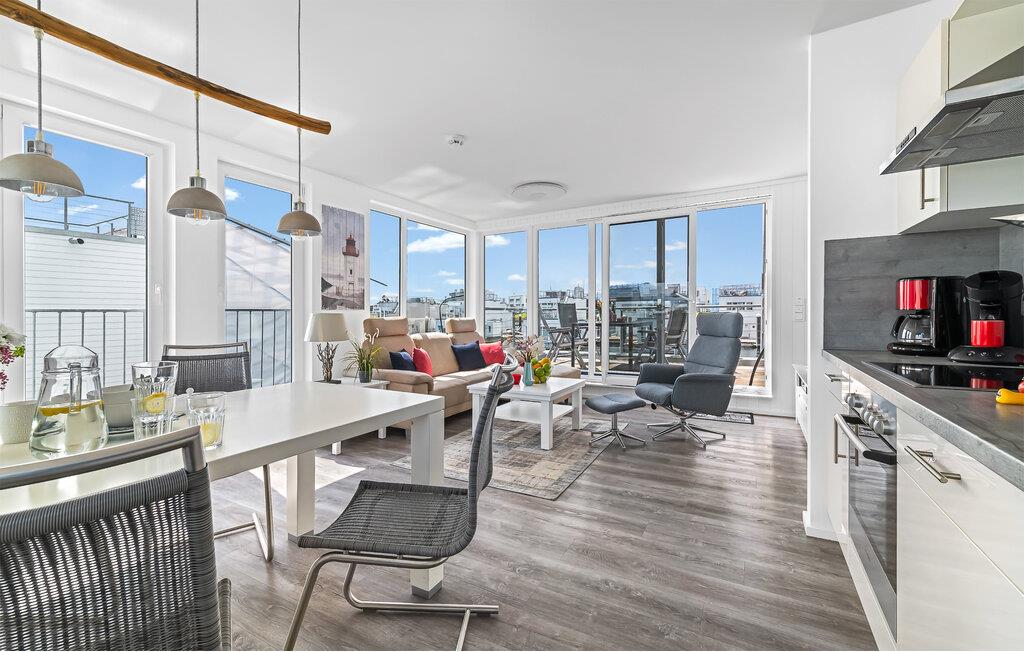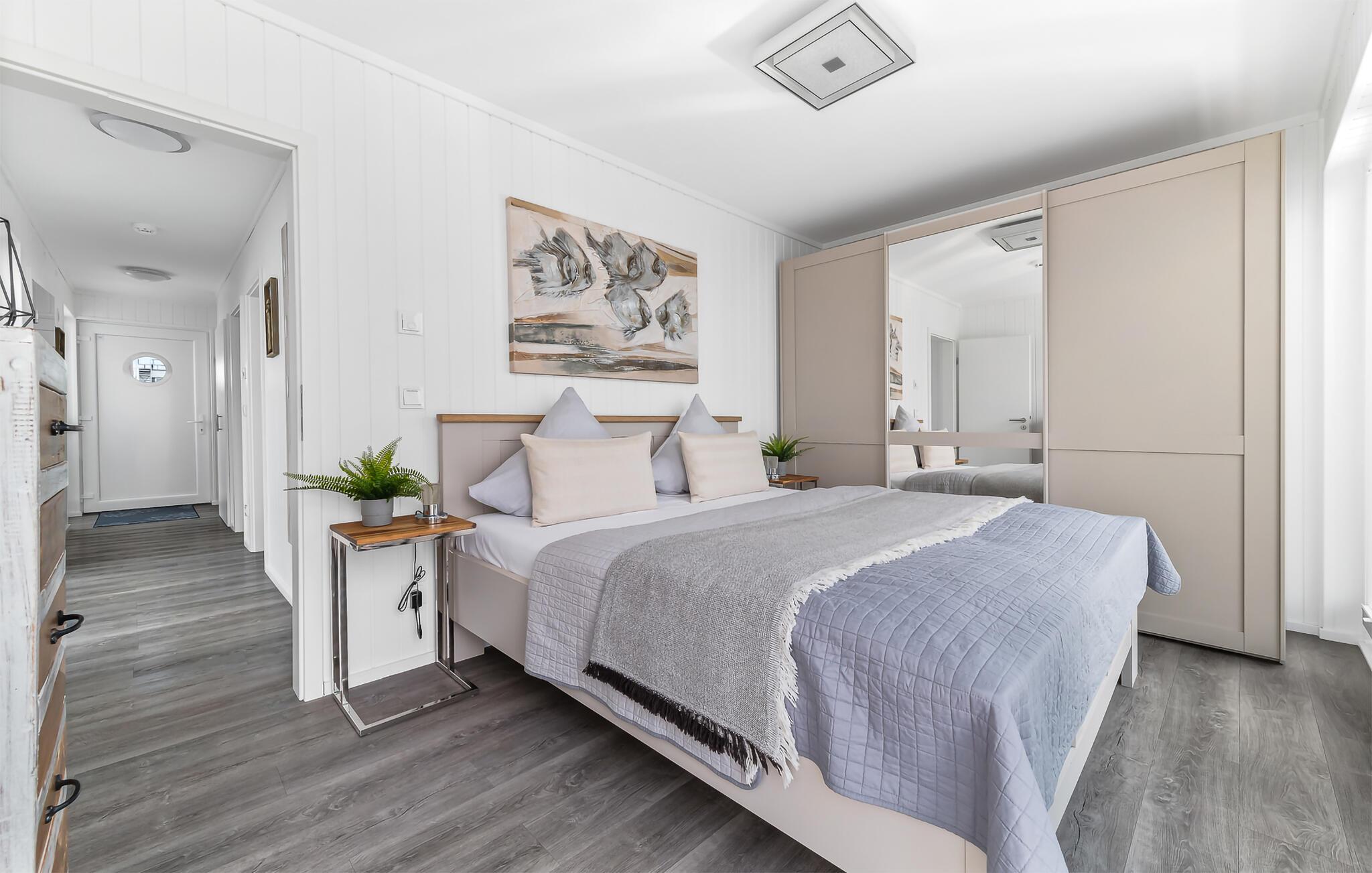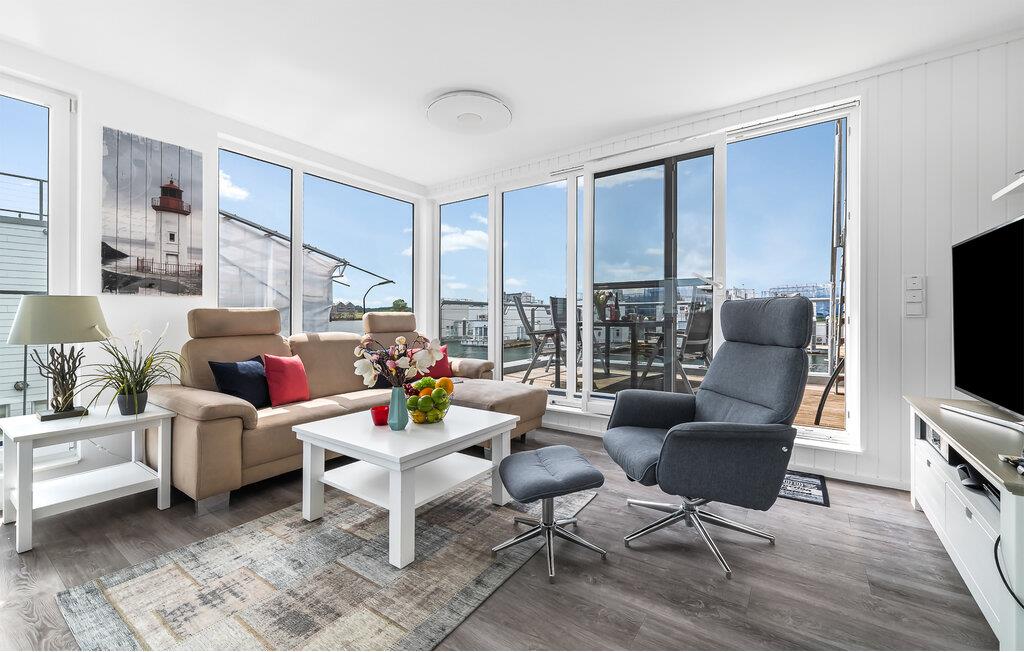 Denne ekstraordinære ferieoplevelse inviterer jer til at nyde livets langsomme tempo, omgivet af havets endeløse vidde. En betagende kulisse strækker sig ud for jeres øjne gennem gulv-til-loft panoramavinduesfronter, mens tagterrassen lover en spektakulær udsigt med en 360-graders udsigt over Sleien, Østersøen og sejl- og lystbådehavnen.