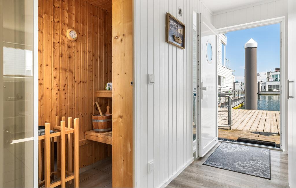 Uanset om I bruger gulvvarmen og saunaen i den mørke årstid eller kaster jer direkte ud i det forfriskende Østersøvand via badestigen om sommeren, tilbyder Susches flydende hus den perfekte balance mellem eventyr og afslapning. Et Smart TV med hjemmeunderholdningsprogram, en Blu-ray-afspiller og endda en havnebiograf på alle niveauer sørger for underholdning. Til gåture på stranden står der en trækvogn til rådighed.