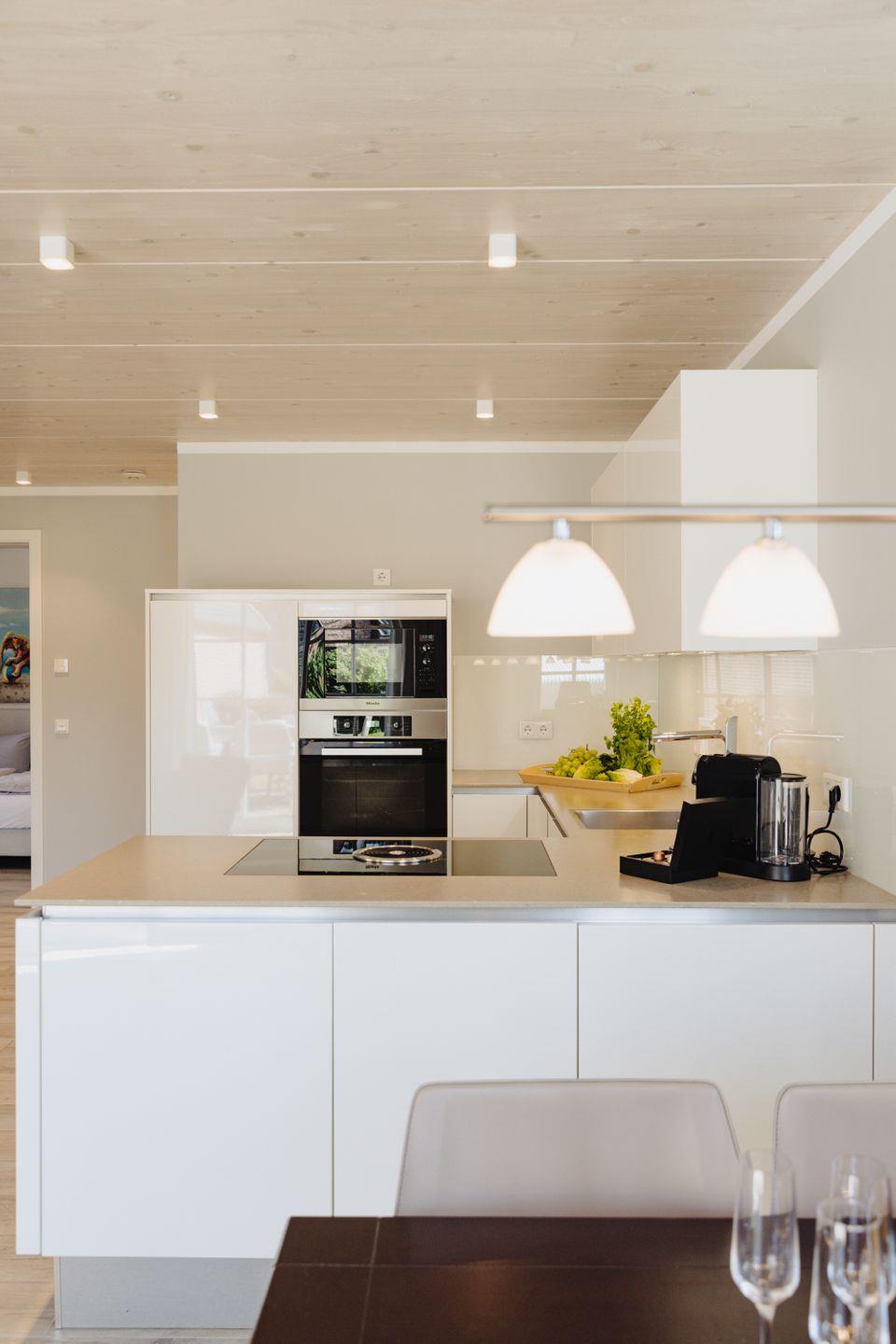 Die moderne, separate Küche ist bestens ausgestattet und macht die Selbstversorgung zum Vergnügen. Im angrenzenden Wohn- und Essbereich laden gemütliche Möbel zum Entspannen und geselligen Beisammensein ein.