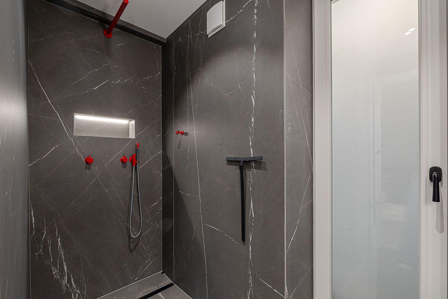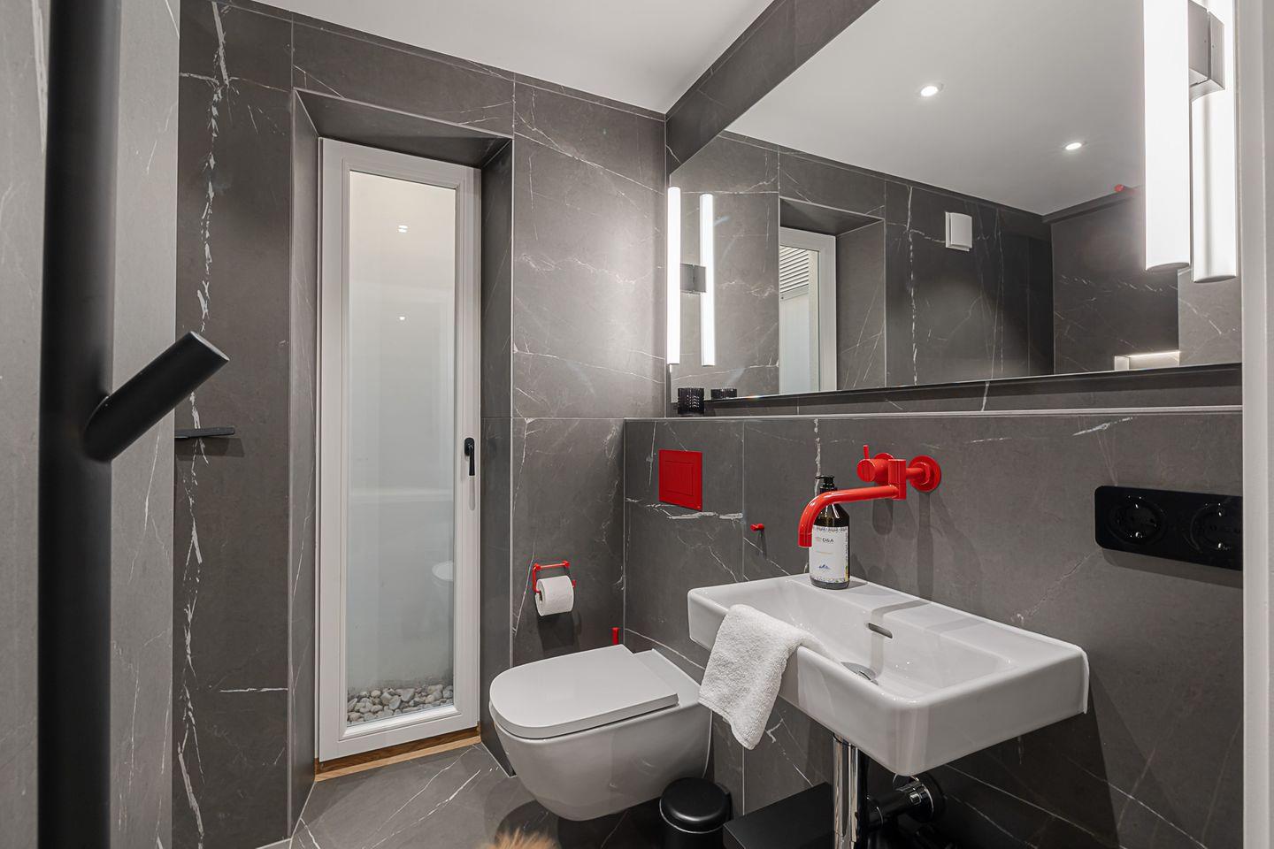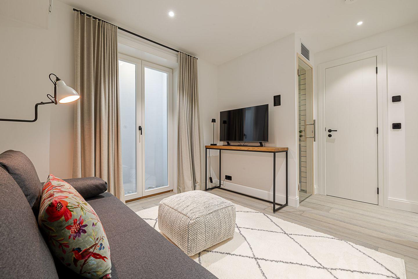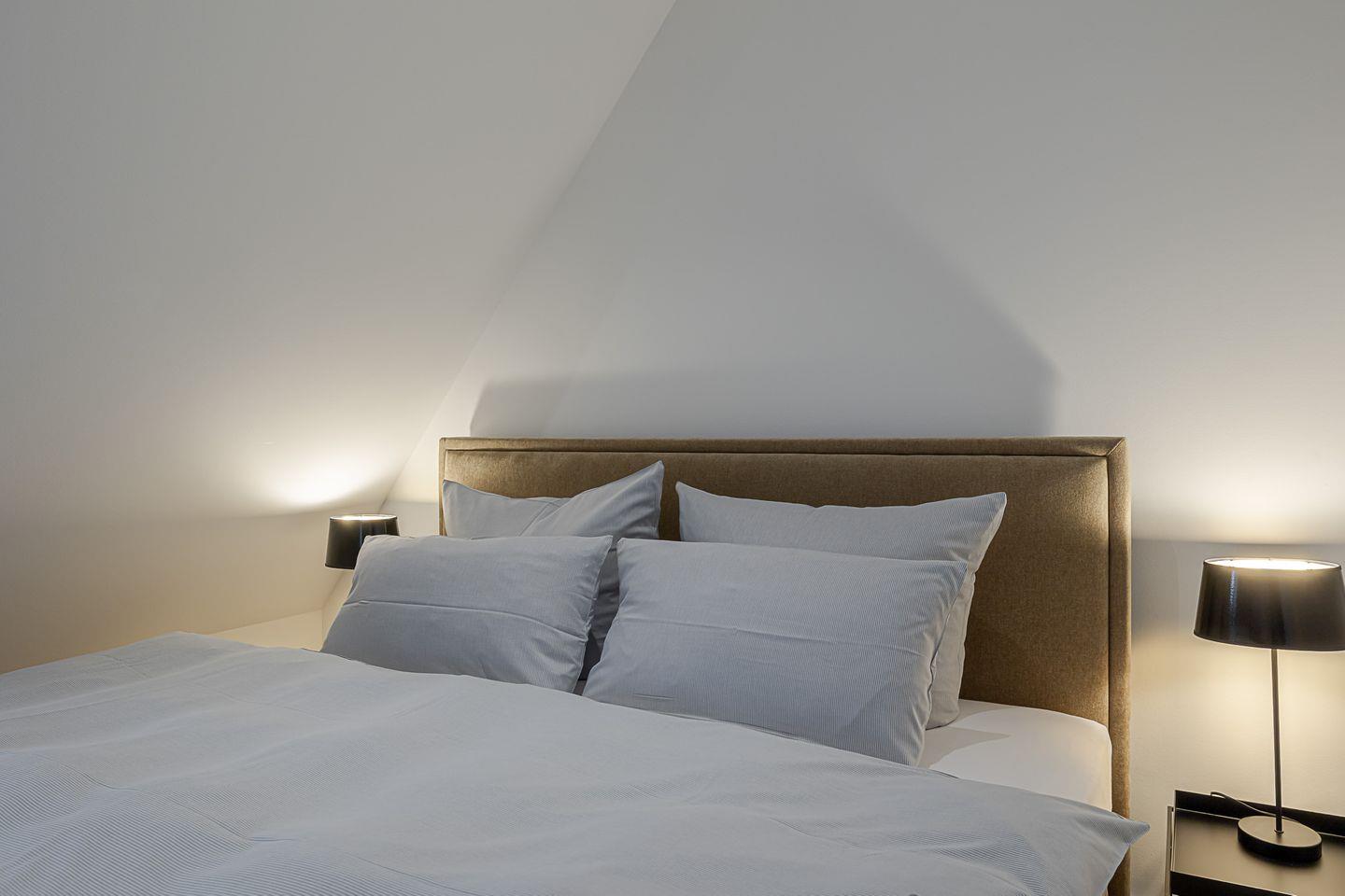 Im oberen Bereich des Hauses finden Sie zwei elegante Schlafzimmer. Das eine, mit einem großzügigen Boxspringbett (1,80 x 2,00 m) und einem luxuriösen Bad en Suite, bietet Ihnen absolute Privatsphäre und Komfort. Das andere Schlafzimmer, ebenso mit einem hochwertigen Boxspringbett (1,80 x 2,00 m), verwöhnt Sie mit einem Hauch von Exklusivität und ebenfalls einem eigenen TV. Im Souterrain erwartet Sie ein zusätzliches Schlafzimmer mit Schlafcouch – ideal für Gäste oder kleine Auszeiten. Hier befindet sich auch ein modernes Bad mit Dusche sowie eine private Sauna für die besonderen Momente der Entspannung.