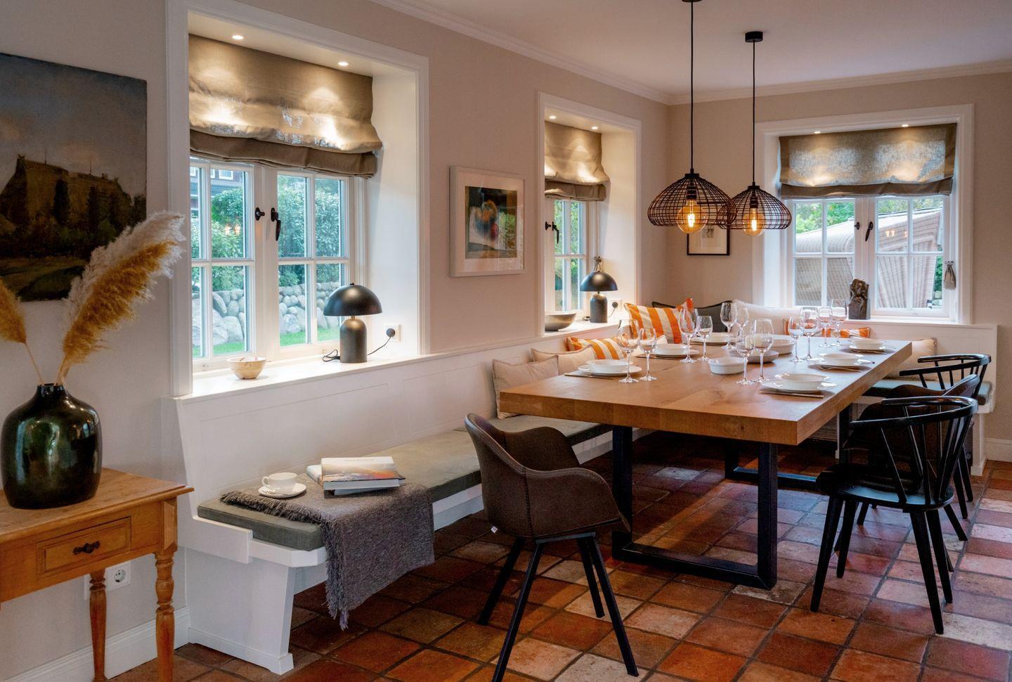 Wunderschöne Doppelhaushälfte unter Reet. Dieses 5-Sterne-Haus - für bis zu 6 Personen und ein Hund auf Anfrage - wurde neu gestaltet und besticht durch hochwertige Materialien, edle Tischlereinbauten und einen modernen Look. Komfortable Extras, wie z.B. die hauseigene Sauna oder der stylische Gas-Kamin sorgen auch in der frischeren Jahreszeit für eine Wohlfühlatmosphäre. Das Morsum Kliff ist fußläufig gut erreichbar.