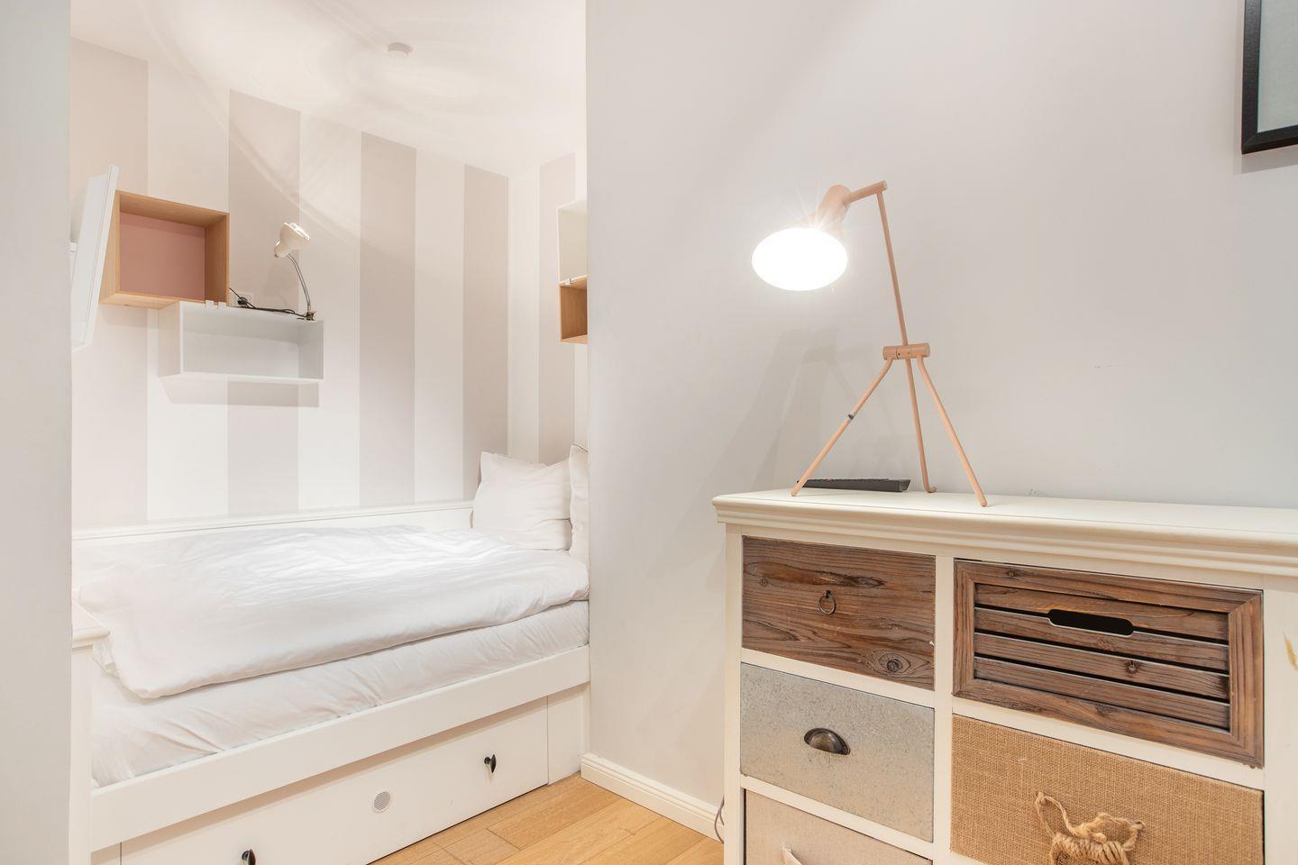Schlafen 2: Schlafraum mit eingebautem französischem Bett (140 x 200 cm), Flat-TV und einer Kommode