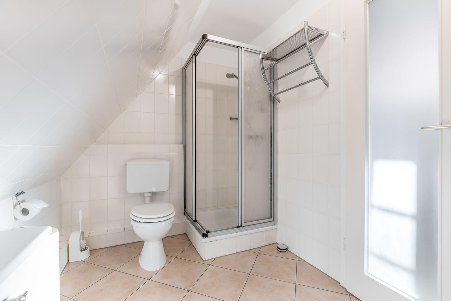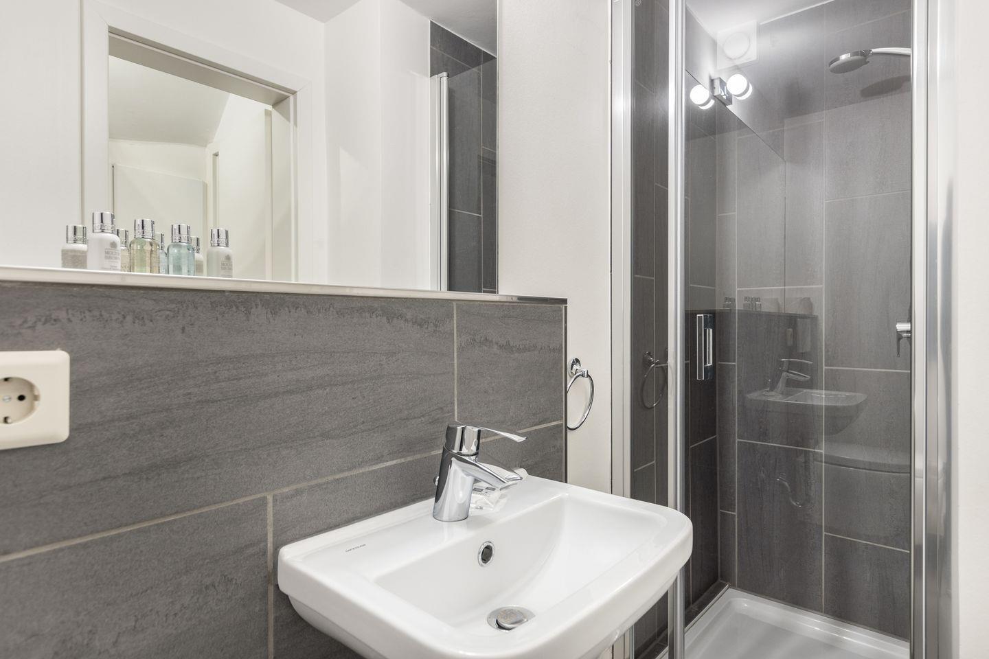 Bad 2: modernes und neu saniertes Duschbad mit Einzelwaschtisch und Spiegel