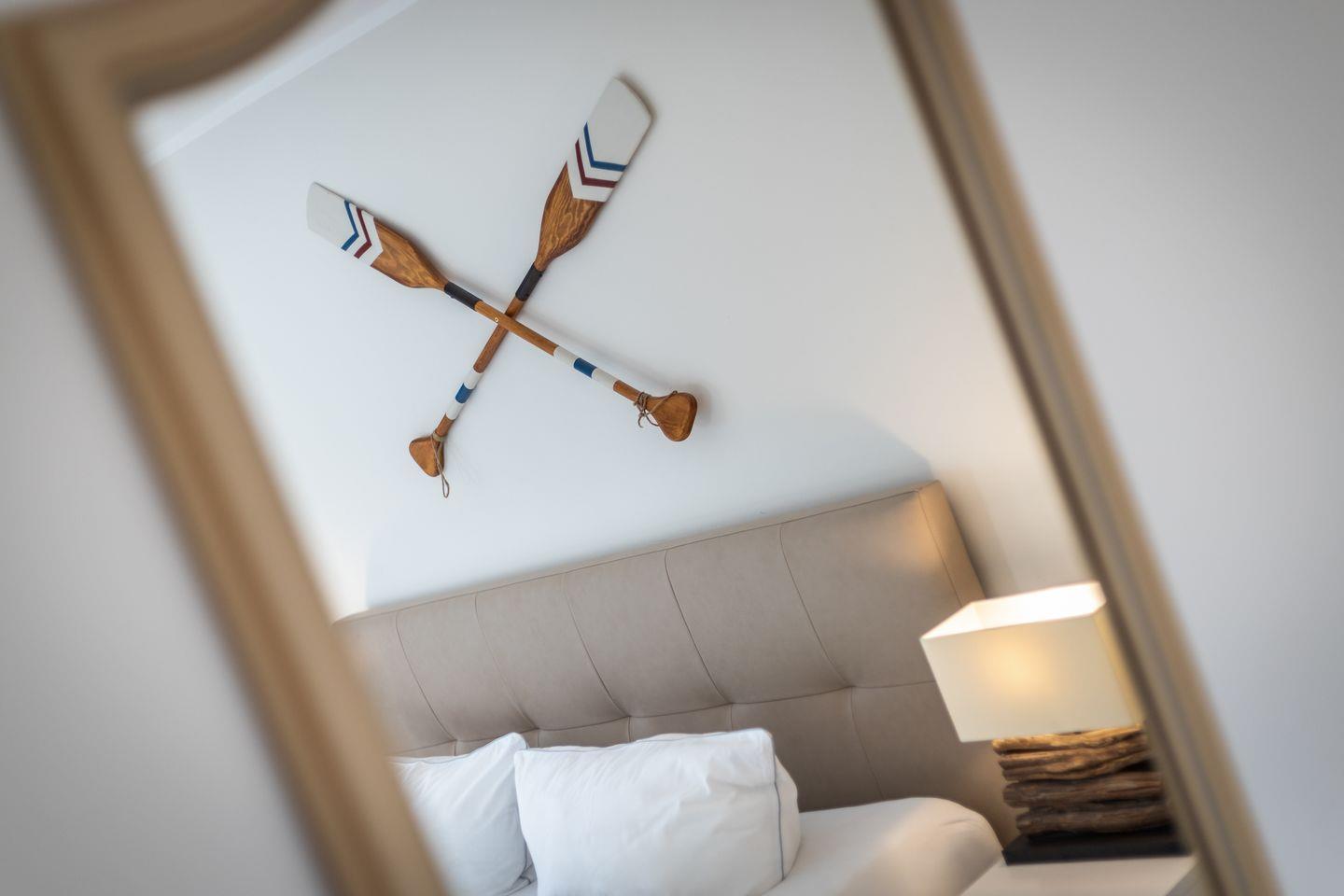 Schlafzimmer: geräumiger Schlafraum mit Boxspringbett (180 x 200 cm) und Einbauschrank