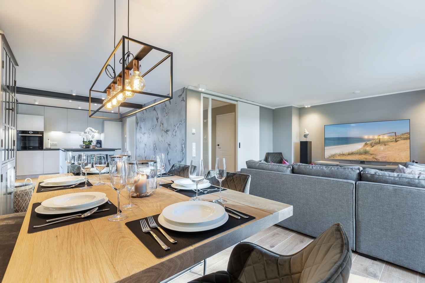 Das hier vorgestellte, einladende Hausteil streckt sich über 4 Etagen und bietet sechs Personen großzügigen Platz. Die Unterkunft liegt in einer reetgedeckten Wohnanlage mit Terrasse. Die stilvolle, moderne Einrichtung zum Wohlfühlen bietet Ihnen auf allen Ebenen jeglichen Komfort wie Flat-TV, WLAN, Geschirrspüler, Waschmaschine und eigenem Pkw-Stellplatz.