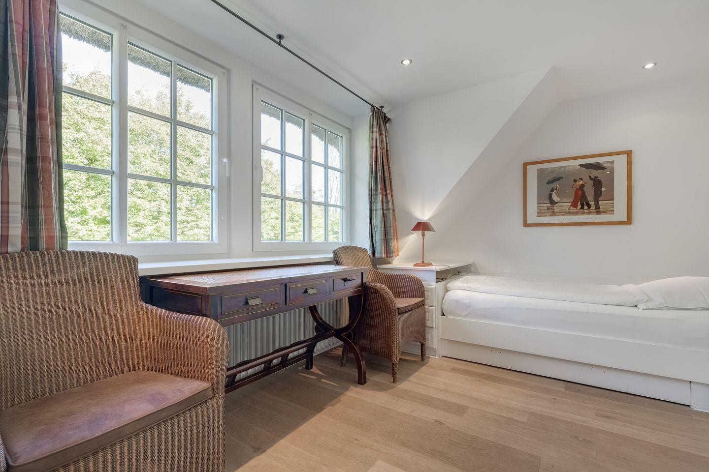 Das hier vorgestellte, geräumige Reihenendhaus (Erdgeschoß, Obergeschoß und Dachgeschoß) ist ca. 120 m² groß und bietet zwei bis sechs Personen ausreichend Platz. Das reetgedeckte Haus liegt mit einem schön gestalteten und eingewachsenen Garten im Südwestteil des Ortes. Das Domizil besticht durch seine einfache aber effektive Ausstattung. Durch den Naturholzboden ist das ganze Haus für Hausstaub-Allergiker geeignet. Es verfügt über Komfort wie Kamin, LED-TV, am TV angeschlossene Stereoanlage (CD, DVD, I-Pod), W-LAN, Cerankochfeld, Mikrowelle, Geschirrspüler, Waschmaschine und Trockner. Selbstverständlich gehört ebenso ein Pkw-Stellplatz zum Objekt.