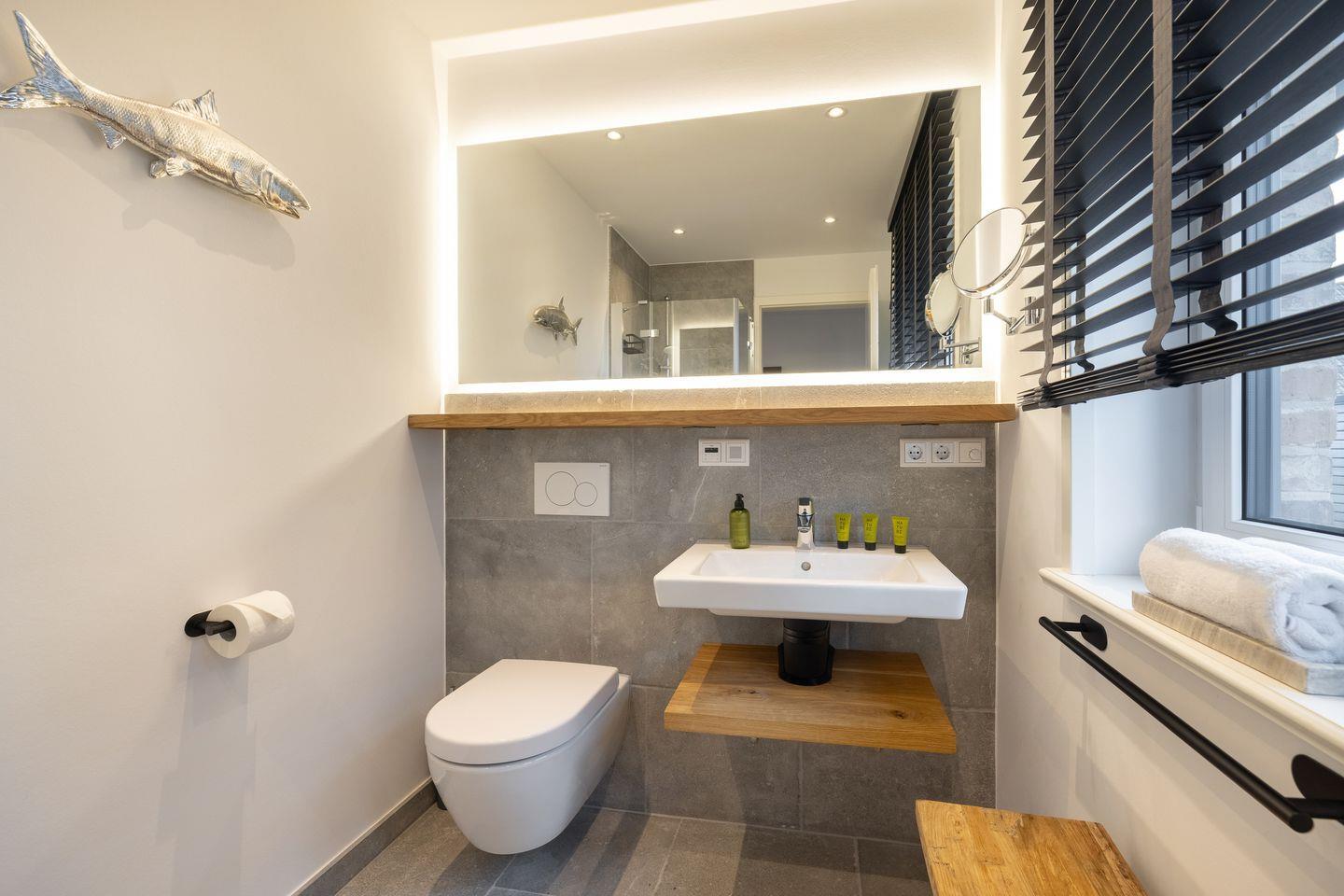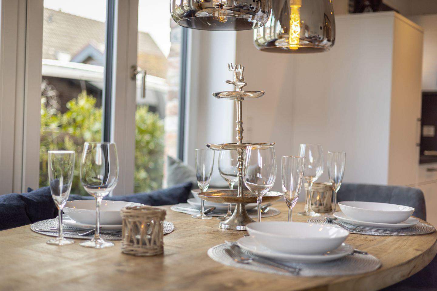 EG: Wohnraum mit Flatscreen-TV, Gaskamin, integrierte Küchenzeile mit Spülmaschine, Nespressomaschine, Backofen, Induktionsherd, Denon Soundsystem, Duschbad, Terrasse mit Strandkorb und Gartenmöbeln (April - Oktober)