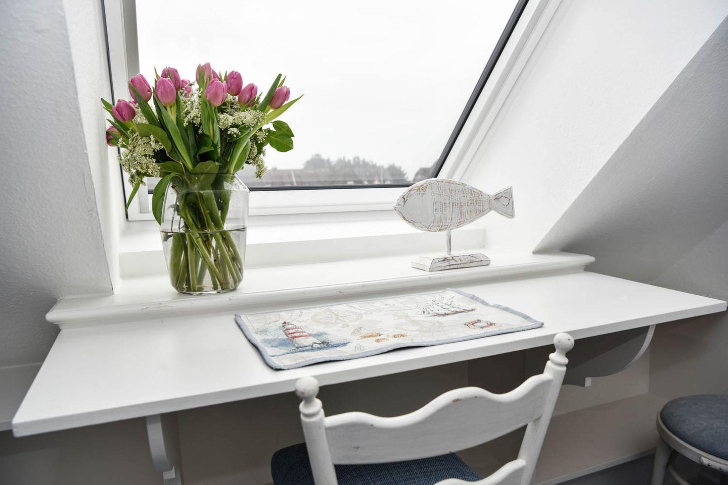 Moin Moin und Willkommen in der charmanten 3-Zimmer-Ferienwohnung "Carina". Dieses in frischem Friesisch-Weiß-Blau gehaltene Maisonette-Domizil hat einen großzügigen Wohn-, Koch- und Essbereich und vor Kurzem eine neue Einbauküche erhalten. "Carina " erstreckt sich über zwei Ebenen und liegt im ersten Stock eines Hauses, ein möblierter Südbalkon gehört dazu, die Straße ist ruhig, der Strand von hier aus nicht weit entfernt.