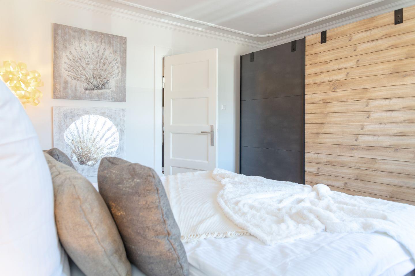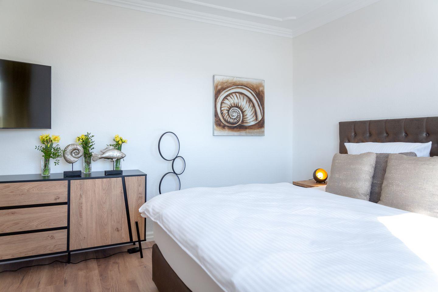 Zwei komfortable Schlafzimmer mit gemütlichen Boxspringbetten garantieren erholsame Nächte und entspannte Urlaubstage. Das geräumige Badezimmer bietet eine moderne Dusche, eine Waschmaschine mit Trocknerfunktion und einen gemütlichen Sitzbereich – perfekt für kleine Wellness-Momente nach einem aktiven Tag.
