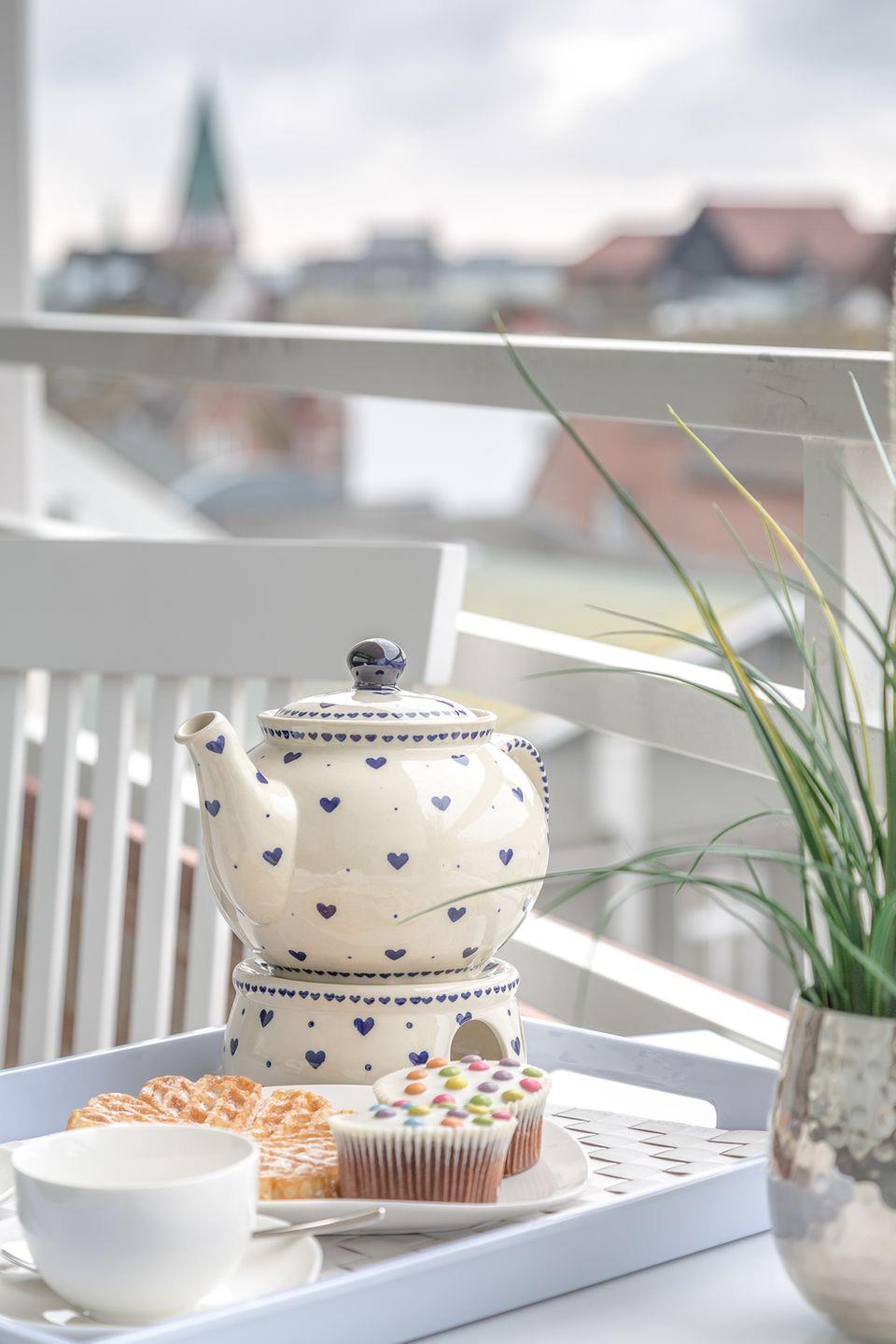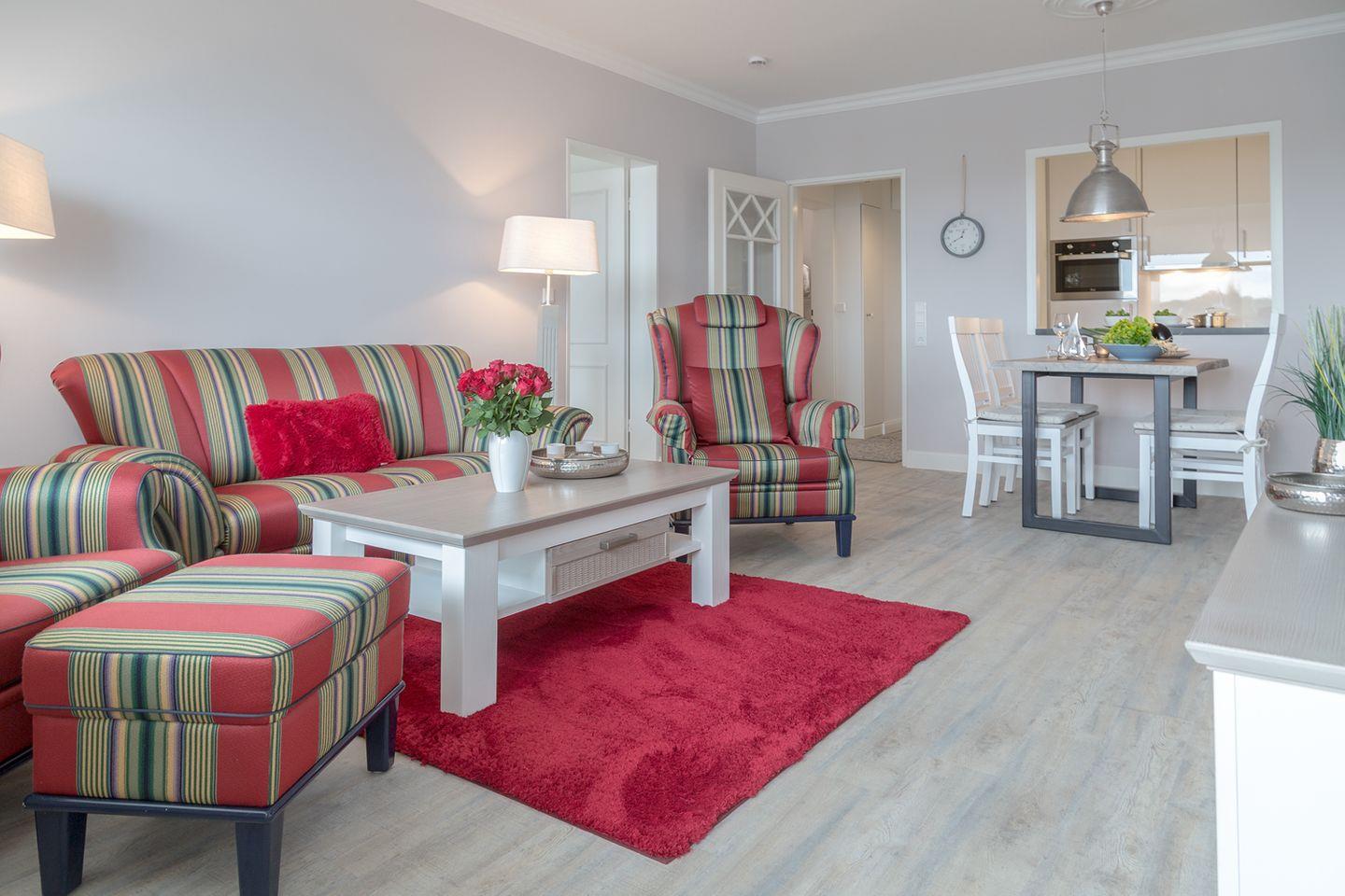 Sie befindet sich in der vierten Etage, welche aber über einen Aufzug mühelos zu erreichen ist. Das geschmackvoll eingerichtete Wohnzimmer umfasst eine offene Küche mit Essbereich, sowie eine gemütliche Sitzlandschaft mit großem Flachbildfernseher und dem Zugang zu dem größeren der beiden Balkone. Die modern ausgestattete Küche mit Durchreiche zum Essbereich bietet alles, was man zum Kochen benötigt. Das großzügige Schlafzimmer verfügt über ein hochwertiges Boxspringbett sowie Zugang zum kleineren Balkon und zum komfortablen Duschbad en Suite. Zusätzlich ist ein Gäste-WC vorhanden. Die beiden südlich ausgerichteten Balkone mit Blick über die Dächer von Westerland bieten ausreichend Platz zum Verweilen und Sonnenbaden. Entsprechendes Mobiliar ist vorhanden. Ein Stellplatz steht Ihnen in einer Parkgarage ganz in der Nähe zur Verfügung. Ihr Fahrzeug sollte allerdings eine Höhe von 1,80m nicht überschreiten.