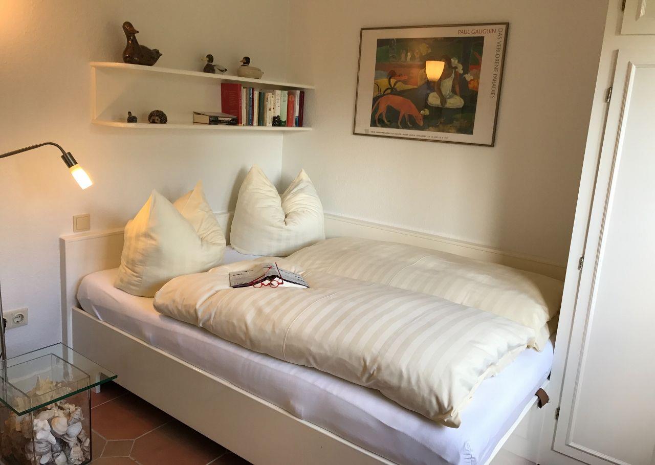 Willkommen im "Lille Hüs", einem kleinen Bungalow in besonders ruhiger Lage von Westerland, mit einer Wohnfläche von circa 35 Quadratmetern. Umgeben ist "Lille Hüs" von einem für die Insel eher untypischen großzügigen und sehr gepflegten Garten (500 Quadratmeter), in dem zwei Strandkörbe Sie schon erwarten. Falls Sie sich jemals wieder von diesem netten, eingewachsenen Stück Inselgrün lösen können: Zum Strand sind es circa 800 Meter, zum nächsten Bäcker ungefähr 400, sowie zum ZOB gut 1200 Meter.