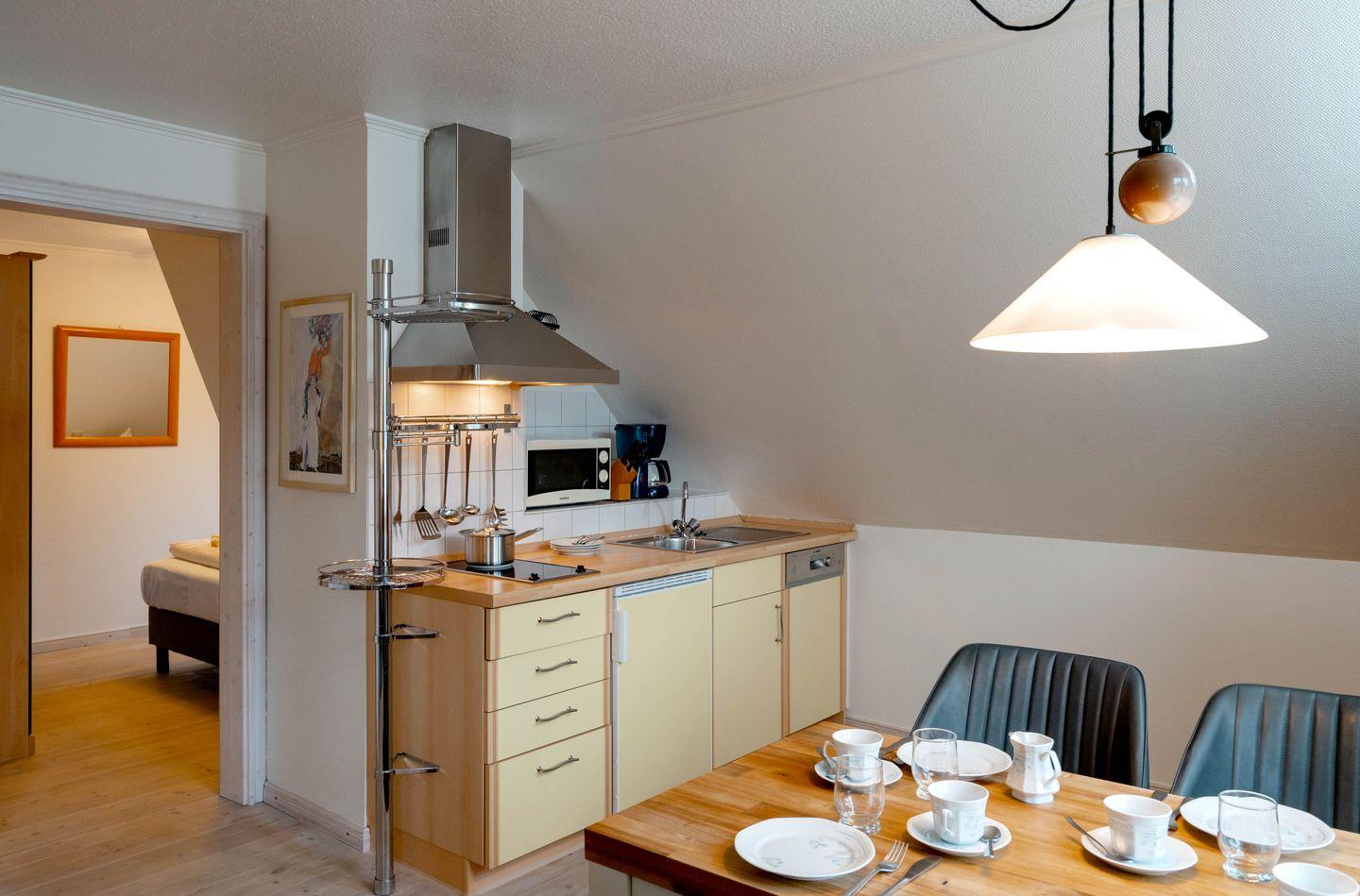Moin, moin und herzlich Willkommen im Norden von Westerland. Diese 2-Zimmer-Ferienwohnung "Fähnrich“ liegt im Haus "Admiral" und nahe beim Strandübergang der Friesischen Straße, der auf die nördliche Promenade der "Inselhauptstadt" führt. Sie ist quasi ein sehr praktisches Konzentrat mit offener Küche, eingerichtet für maximal zwei Personen, mit separatem Schlafzimmer mit 180er Doppelbett und hat sogar einen eigenen Außenparkplatz. Wobei Sie genaugenommen gar kein Auto brauchen an dieser Adresse, sowohl der Strand als auch die Westerländer Innenstadt und die Supermärkte sind fußläufig bequem erreichbar. Und auch sonst fehlt es an nichts: Wlan ist hier selbstverständlich und sogar eine Waschmaschine und ein Trockner gehören zum Haus, Sie können also ganz entspannt auch gerne länger bleiben beim "Fähnrich". Und bitte beachten Sie: Hier handelt es sich um eine Nichtraucherwohnung.