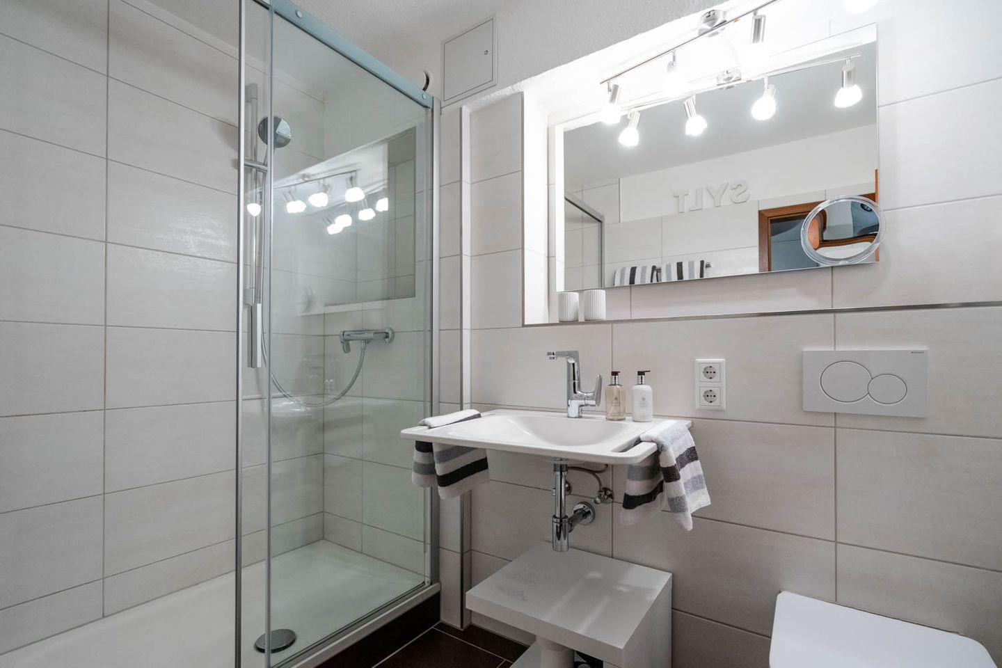 Sie suchen eine liebevoll eingerichtete 2-Zimmer-Ferienwohnung über zwei Ebenen, bei der es etwas mehr sein darf? Dann könnte das 50 Quadratmeter große Appartement "Hüs Wüf" genau das Richtige für Sie sein. Es liegt superzentral und ebenerdig in einem Appartementhaus nahe des Bahnhofs, also mittendrin und doch ruhig. Und als Extra gibt es im Haus auch noch ein Schwimmbad und eine Sauna (gegen Gebühr).